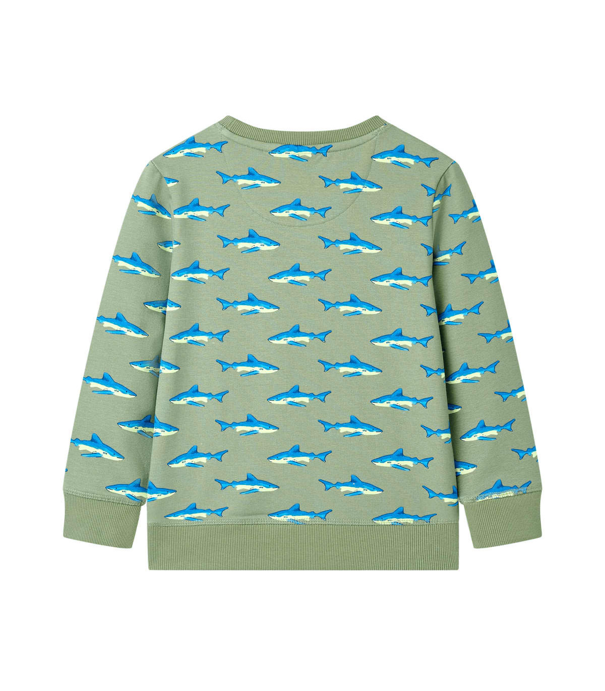 Our children's clothing line is all about affordable, high-quality, and durable everyday wear for kids aged 1.5 to 10. Our range includes jackets, sweaters, shirts, and many more, with a variety in style, size, and colour. Following the high-quality standard in the market, we are using high-grade materials and advanced manufacturing techniques. This kids' sweatshirt has long sleeves, a round neck, and rib-knit edges at the cuffs, neckline, and bottom. The children's sweatshirt is printed with sharks all over. The sweatshirt for kids is made from soft material that includes 95% cotton and 5% elastane for comfort and breathability. Good to know: This size chart in the picture provides measurements for kids aged 1.5 to 10, covering the height, chest, waist, and hip. You can easily find the right fit for your child.