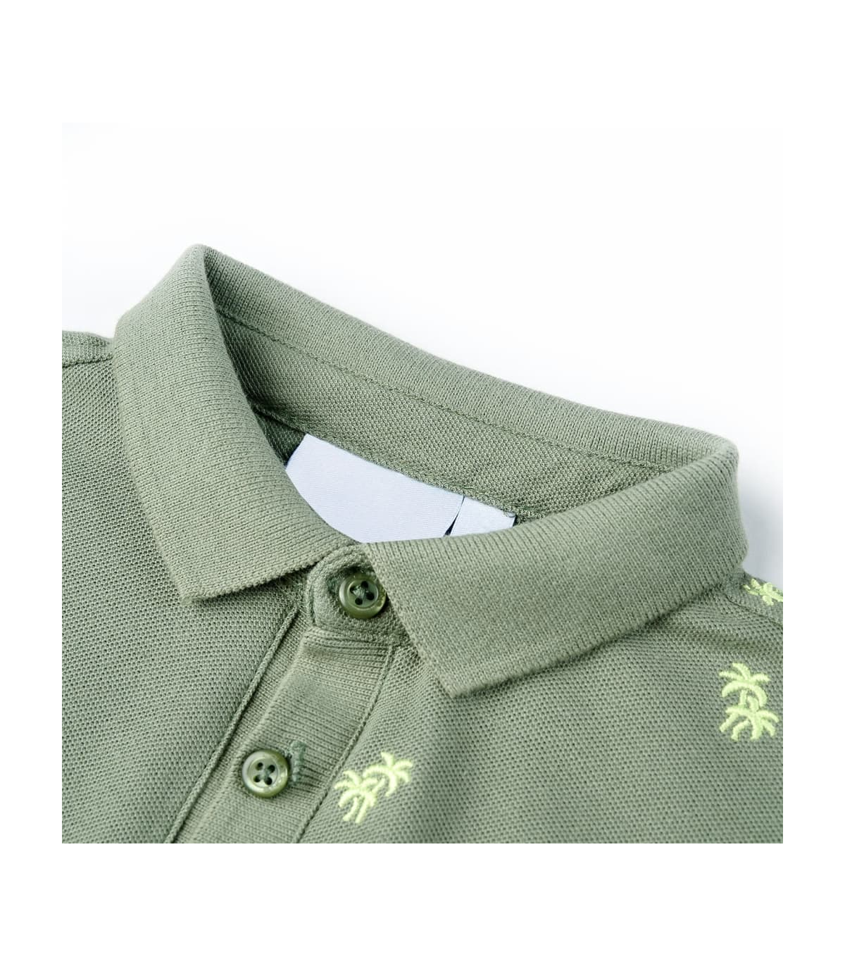 Our children's clothing line is all about affordable, high-quality, and durable everyday wear for kids aged 1.5 to 10. Our range includes jackets, sweaters, shirts, and many more, with a variety in style, size, and colour. Following the high-quality standard in the market, we are using high-grade materials and advanced manufacturing techniques. This kids' polo shirt has short sleeves, a button placket, and a ribbed collar. The children's polo shirt features small palm trees all over. The polo shirt for kids is made of 100% cotton for a soft and comfortable touch. Good to know: This size chart in the picture provides measurements for kids aged 1.5 to 10, covering the height, chest, waist, and hip. You can easily find the right fit for your child.