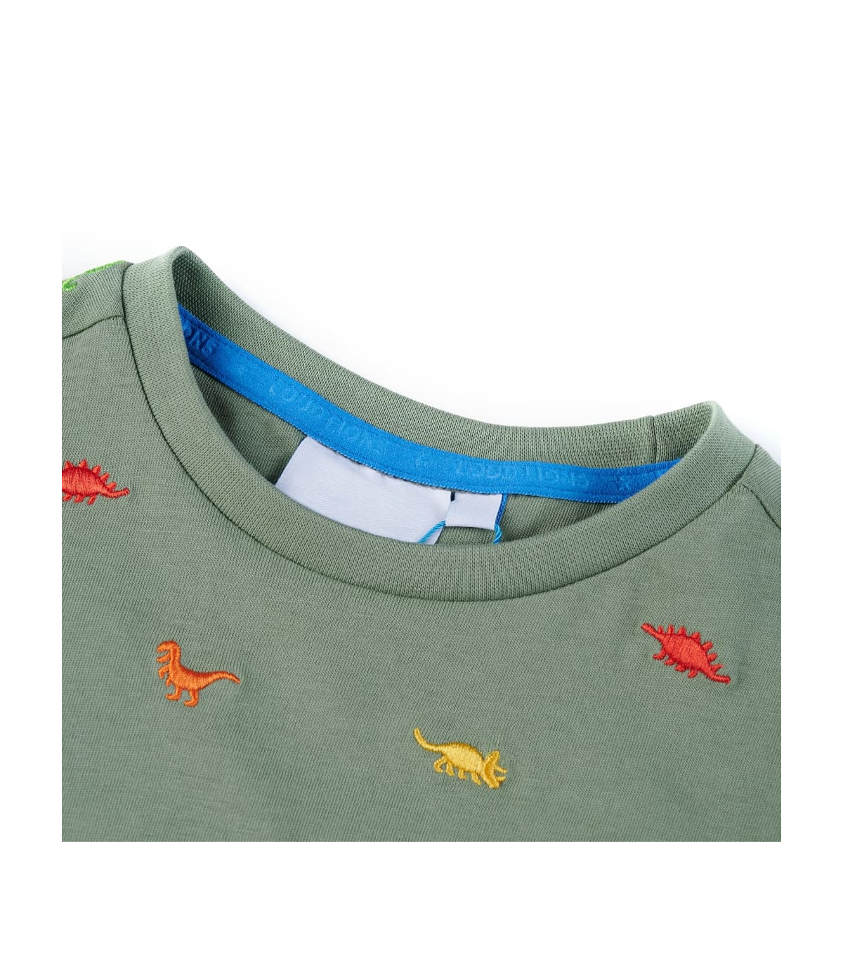Our children's clothing line is all about affordable, high-quality, and durable everyday wear for kids aged 1.5 to 10. Our range includes jackets, sweaters, shirts, and many more, with a variety in style, size, and colour. Following the high-quality standard in the market, we are using high-grade materials and advanced manufacturing techniques. This kids' T-shirt has short sleeves, a round neckline, and a straight model. The children's T-shirt features red, orange, yellow, and green dinosaurs. The T-shirt for kids is made of 100% cotton for a soft and comfortable touch. Good to know: This size chart in the picture provides measurements for kids aged 1.5 to 10, covering the height, chest, waist, and hip. You can easily find the right fit for your child.