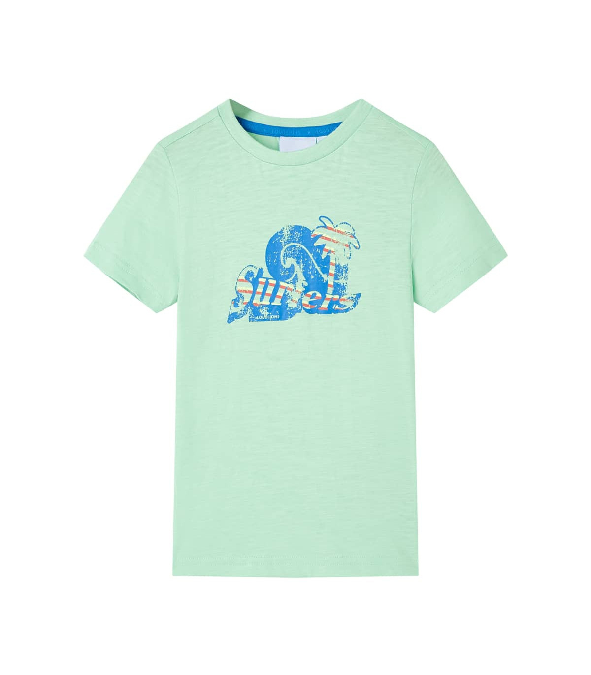 Our children's clothing line is all about affordable, high-quality, and durable everyday wear for kids aged 1.5 to 10. Our range includes jackets, sweaters, shirts, and many more, with a variety in style, size, and colour. Following the high-quality standard in the market, we are using high-grade materials and advanced manufacturing techniques. This kids' T-shirt has short sleeves, a round neckline, and a straight model. The children's T-shirt is printed with a wave, a tree, and the word "Surfers". The T-shirt for kids is made of 100% combed cotton for a soft and comfortable touch. Good to know: This size chart in the picture provides measurements for kids aged 1.5 to 10, covering the height, chest, waist, and hip. You can easily find the right fit for your child.
