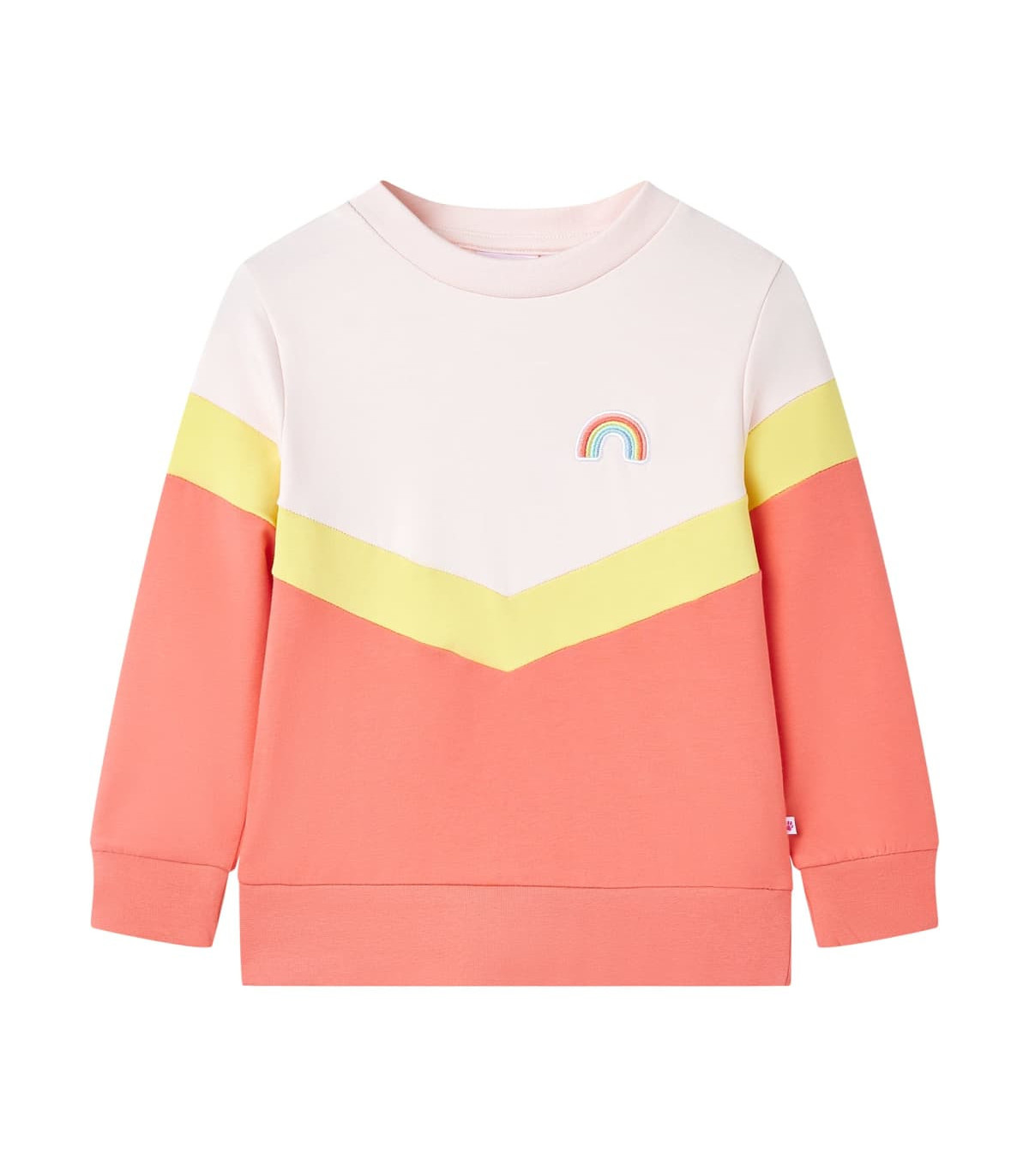 Our children's clothing line is all about affordable, high-quality, and durable everyday wear for kids aged 1.5 to 10. Our range includes jackets, sweaters, shirts, and many more, with a variety in style, size, and colour. Following the high-quality standard in the market, we are using high-grade materials and advanced manufacturing techniques. This kids' sweatshirt has long sleeves, a round neck, and rib-knit edges at the cuffs, neckline, and bottom. The children's sweatshirt has lovely embroidery rainbow on the chest. The kids' top is made of 95% cotton and 5% elastane for comfort and breathability. Good to know: The size chart in the picture provides measurements for kids aged 1.5 to 10, covering the height, chest, waist, and hip. You can easily find the right fit for your child.