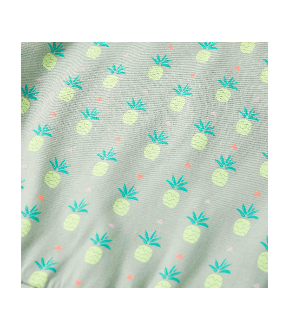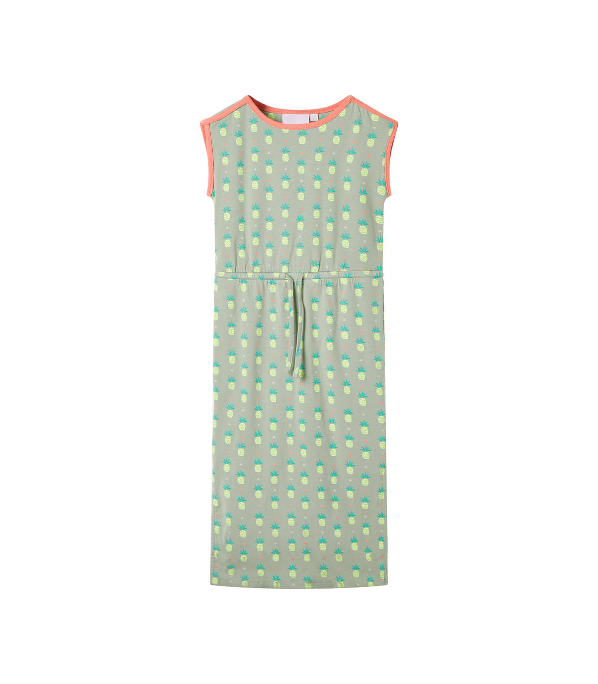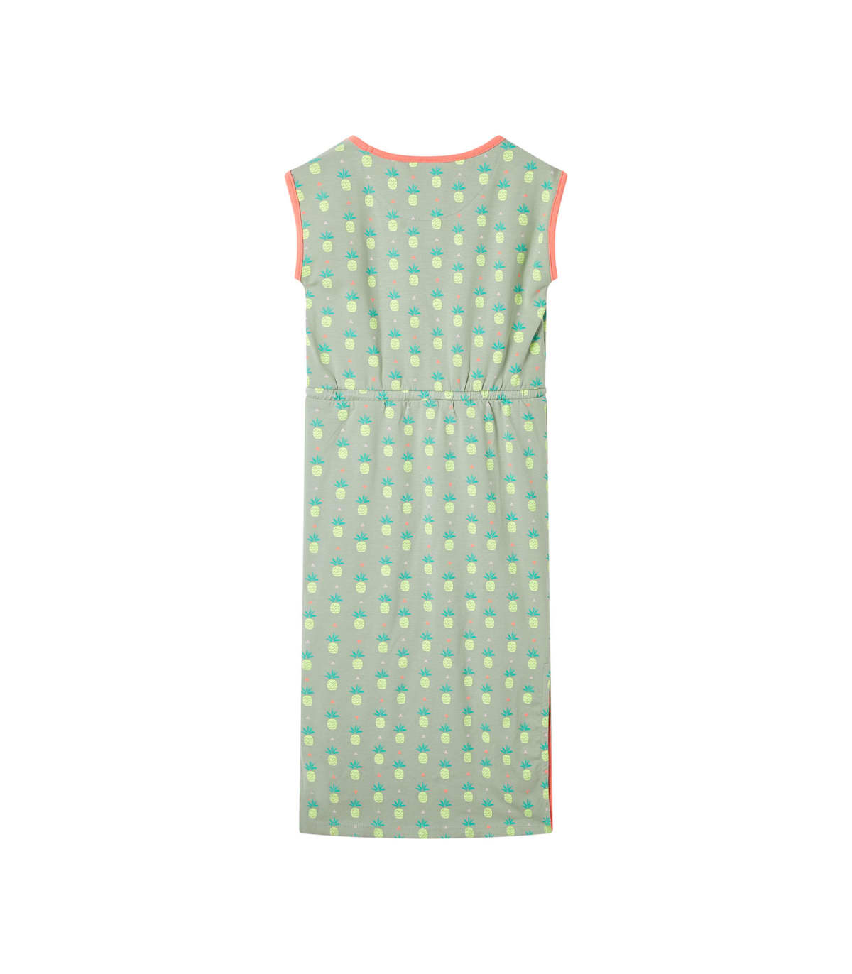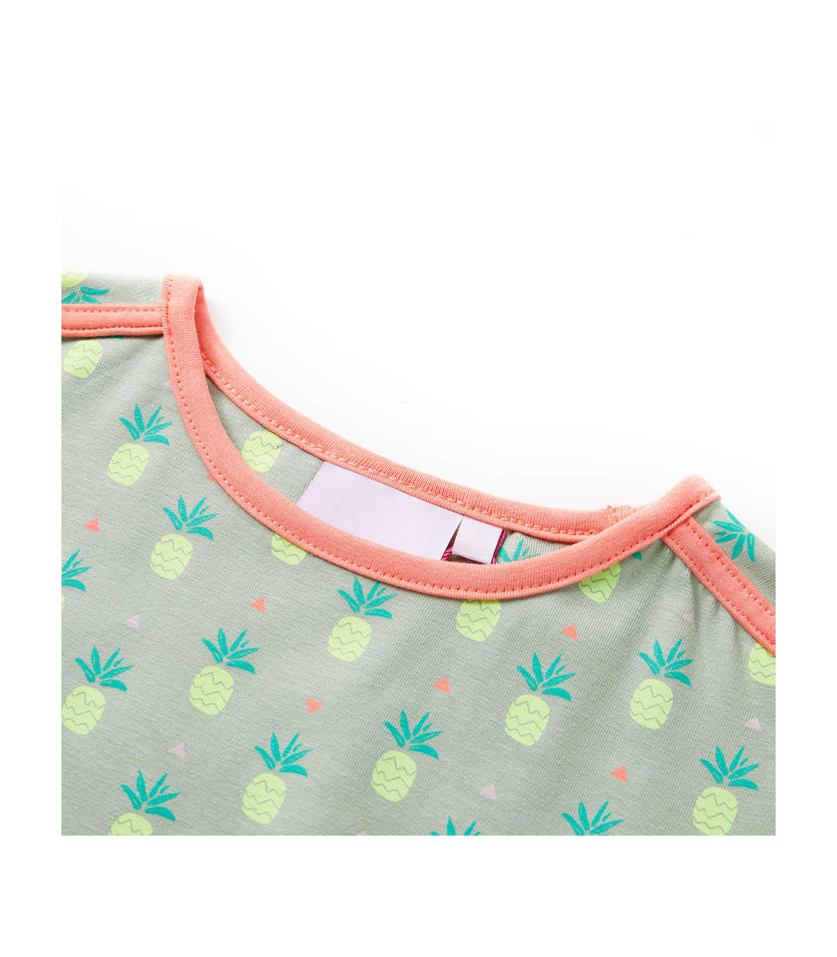 Our children's clothing line is all about affordable, high-quality, and durable everyday wear for kids aged 1.5 to 10. Our range includes jackets, sweaters, shirts, and many more, with a variety in style, size, and colour. Following the high-quality standard in the market, we are using high-grade materials and advanced manufacturing techniques. This kids' dress has a round neckline, all-over print, and a drawstring waistband. This children's dress is printed with pineapples all over. The kids' short dress is made from soft material that includes 92% cotton and 8% elastane for comfort and breathability. Good to know: The size chart in the picture provides measurements for kids aged 1.5 to 10, covering the height, chest, waist, and hip. You can easily find the right fit for your child.
