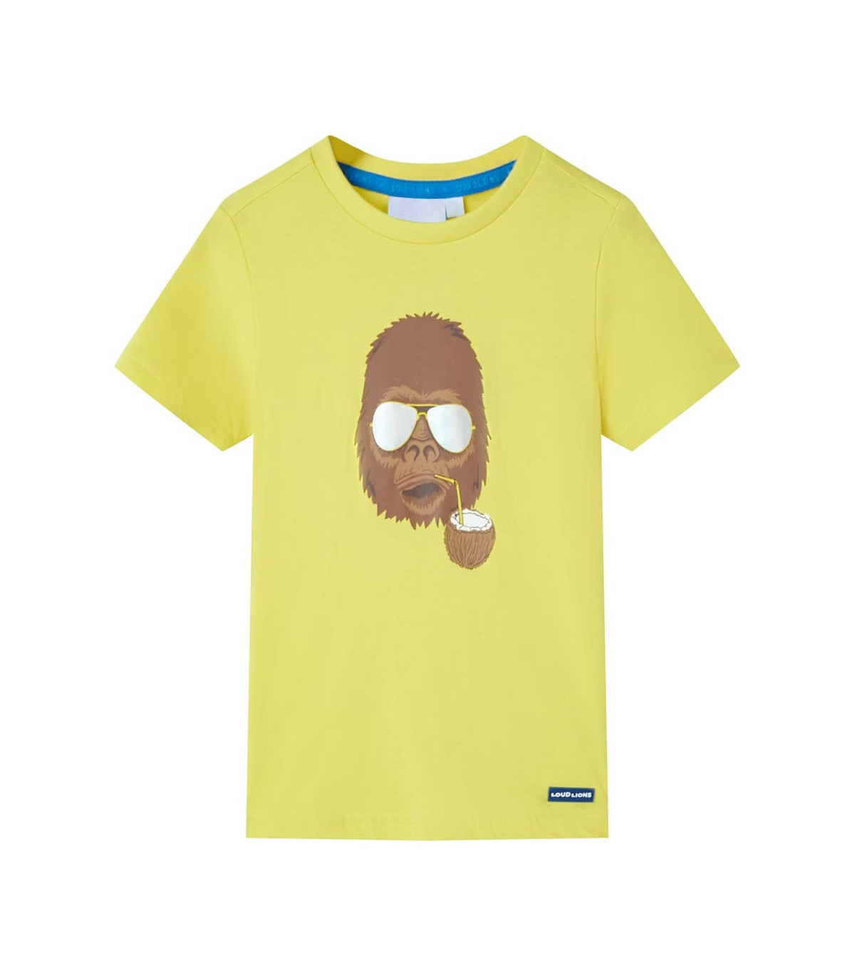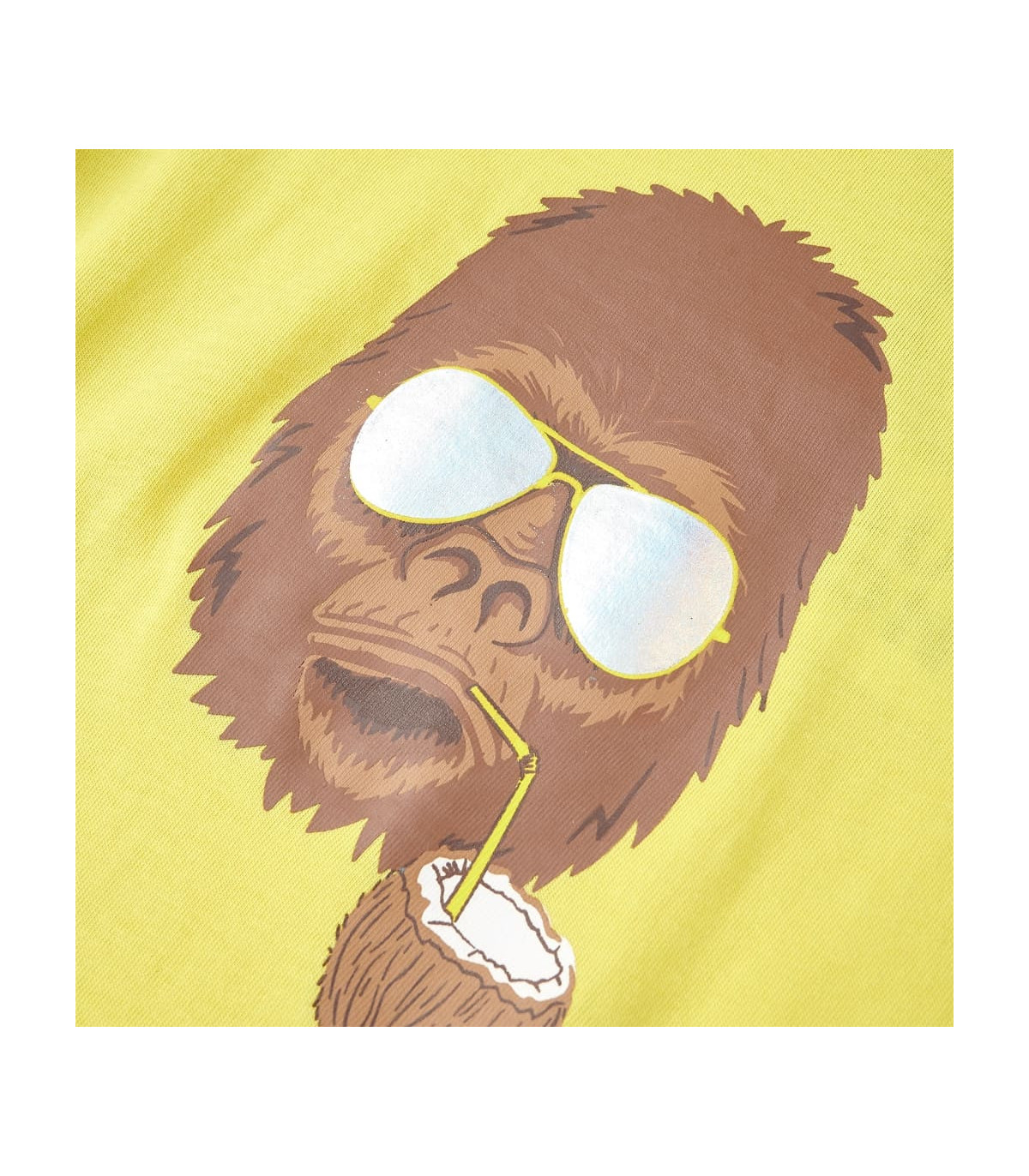 Our children's clothing line is all about affordable, high-quality, and durable everyday wear for kids aged 1.5 to 10. Our range includes jackets, sweaters, shirts, and many more, with a variety in style, size, and colour. Following the high-quality standard in the market, we are using high-grade materials and advanced manufacturing techniques. This kids' T-shirt has short sleeves, a round neckline, and a straight model. The children's T-shirt features a gorilla and coconut on the front. The T-shirt for kids is made of 100% cotton for a soft and comfortable touch. Good to know: This size chart in the picture provides measurements for kids aged 1.5 to 10, covering the height, chest, waist, and hip. You can easily find the right fit for your child.