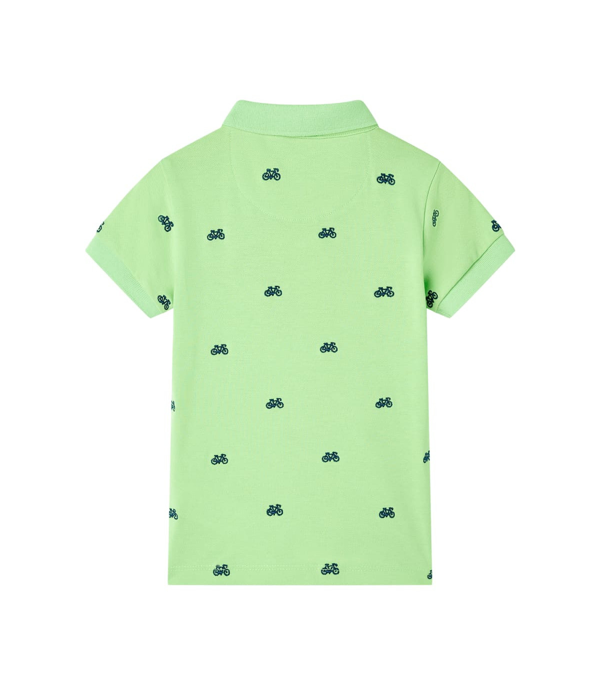 Our children's clothing line is all about affordable, high-quality, and durable everyday wear for kids aged 1.5 to 10. Our range includes jackets, sweaters, shirts, and many more, with a variety in style, size, and colour. Following the high-quality standard in the market, we are using high-grade materials and advanced manufacturing techniques. This kids' polo shirt has short sleeves, a button placket, and a ribbed collar. The children's polo shirt features small bikes all over. The polo shirt for kids is made of 57% cotton, 38% polyester, and 5% elastane for a soft and comfortable touch. Good to know: This size chart in the picture provides measurements for kids aged 1.5 to 10, covering the height, chest, waist, and hip. You can easily find the right fit for your child.