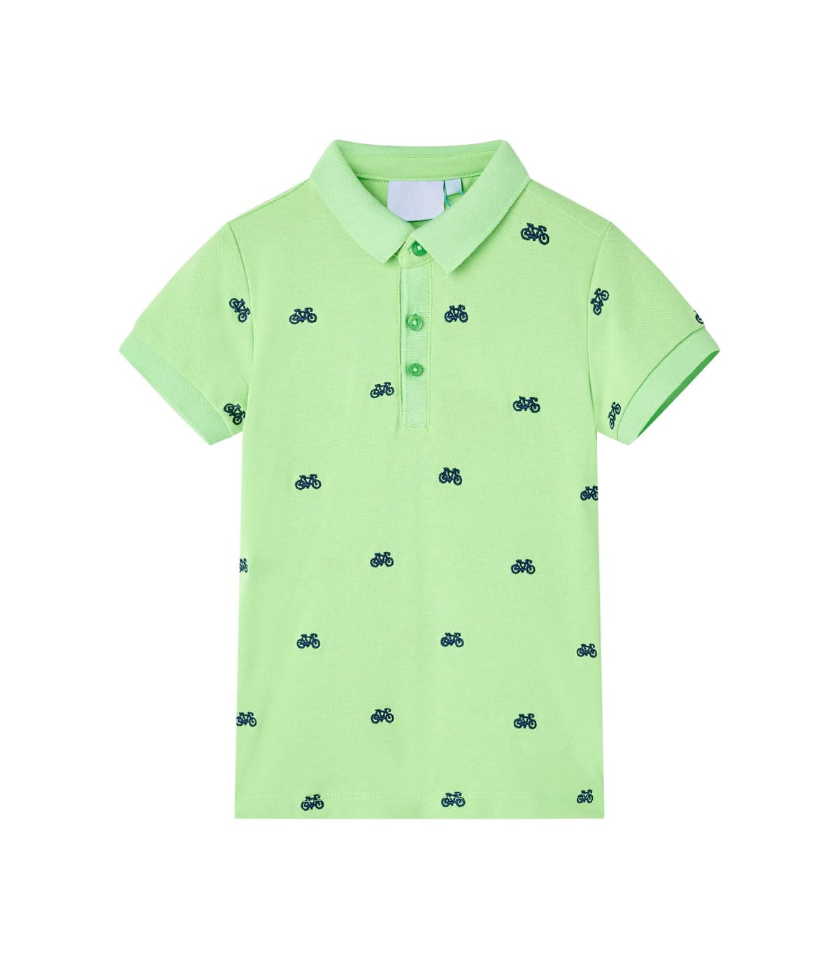 Our children's clothing line is all about affordable, high-quality, and durable everyday wear for kids aged 1.5 to 10. Our range includes jackets, sweaters, shirts, and many more, with a variety in style, size, and colour. Following the high-quality standard in the market, we are using high-grade materials and advanced manufacturing techniques. This kids' polo shirt has short sleeves, a button placket, and a ribbed collar. The children's polo shirt features small bikes all over. The polo shirt for kids is made of 57% cotton, 38% polyester, and 5% elastane for a soft and comfortable touch. Good to know: This size chart in the picture provides measurements for kids aged 1.5 to 10, covering the height, chest, waist, and hip. You can easily find the right fit for your child.