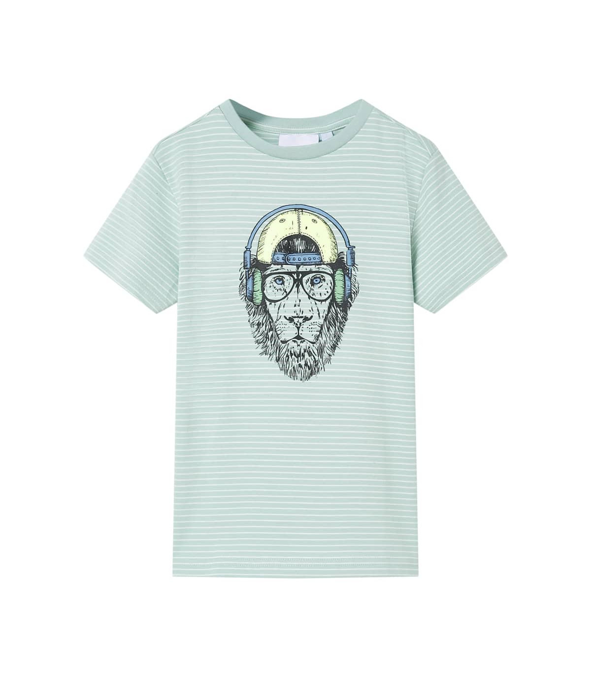 Our children's clothing line is all about affordable, high-quality, and durable everyday wear for kids aged 1.5 to 10. Our range includes jackets, sweaters, shirts, and many more, with a variety in style, size, and colour. Following the high-quality standard in the market, we are using high-grade materials and advanced manufacturing techniques. This kids' T-shirt has short sleeves, stripes, a round neckline, and a straight model. This T-shirt features a cool lion. The children's short sleeve T-shirt is made of 48% cotton, 47% rayon, and 5% elastane for a soft and comfortable touch. Good to know: This size chart in the picture provides measurements for kids aged 1.5 to 10, covering the height, chest, waist, and hip. You can easily find the right fit for your child.