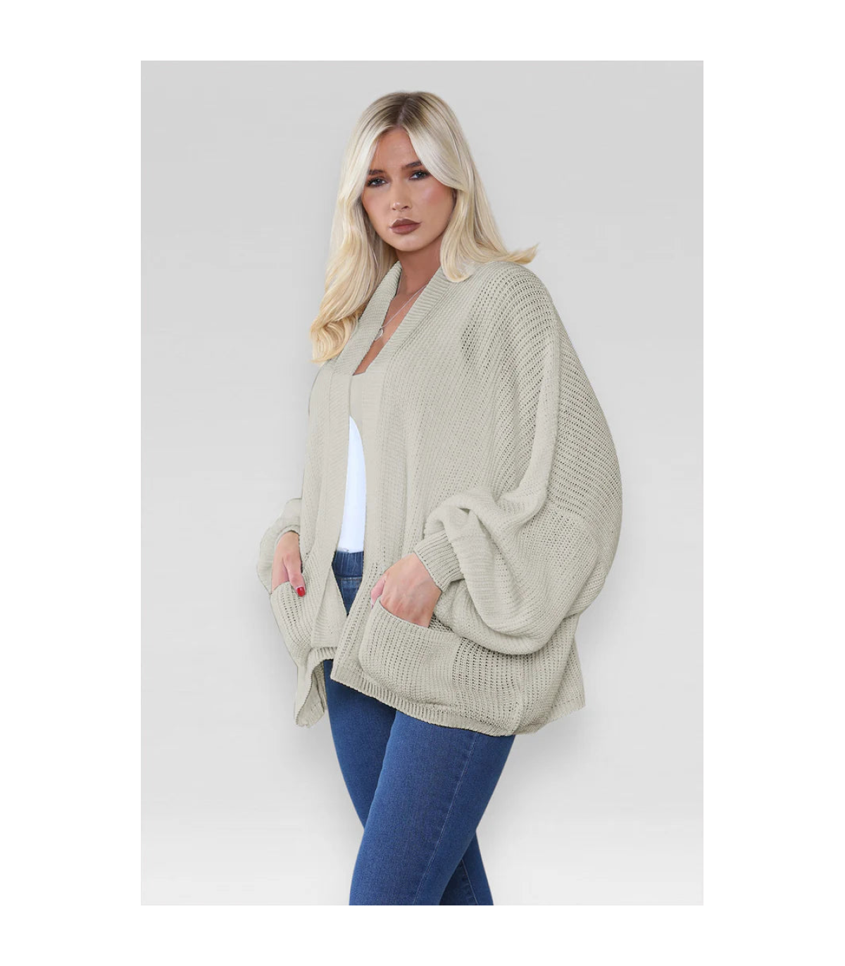 Stay cozy and stylish with our Ladies Oversized Cropped Short Balloon Pocket Chunky Knitted Cardigan. The chunky knit and balloon pockets provide both warmth and a trendy look. Perfect for layering, this cardigan is a must-have for any fashion-forward wardrobe.