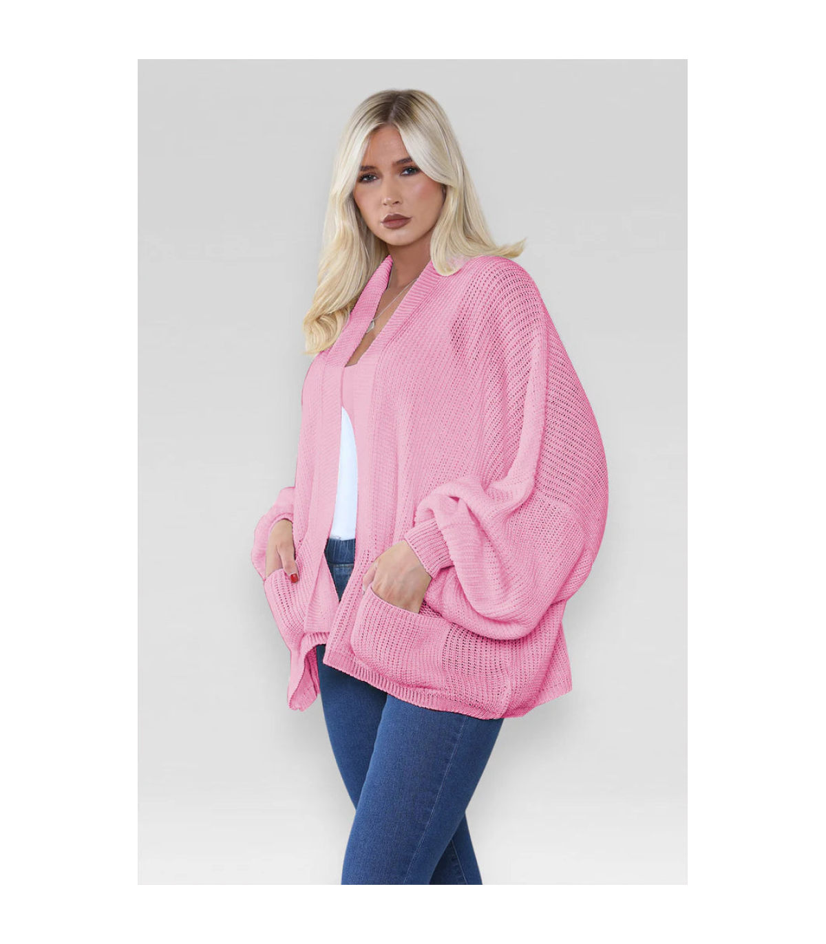 Stay cozy and stylish with our Ladies Oversized Cropped Short Balloon Pocket Chunky Knitted Cardigan. The chunky knit and balloon pockets provide both warmth and a trendy look. Perfect for layering, this cardigan is a must-have for any fashion-forward wardrobe.