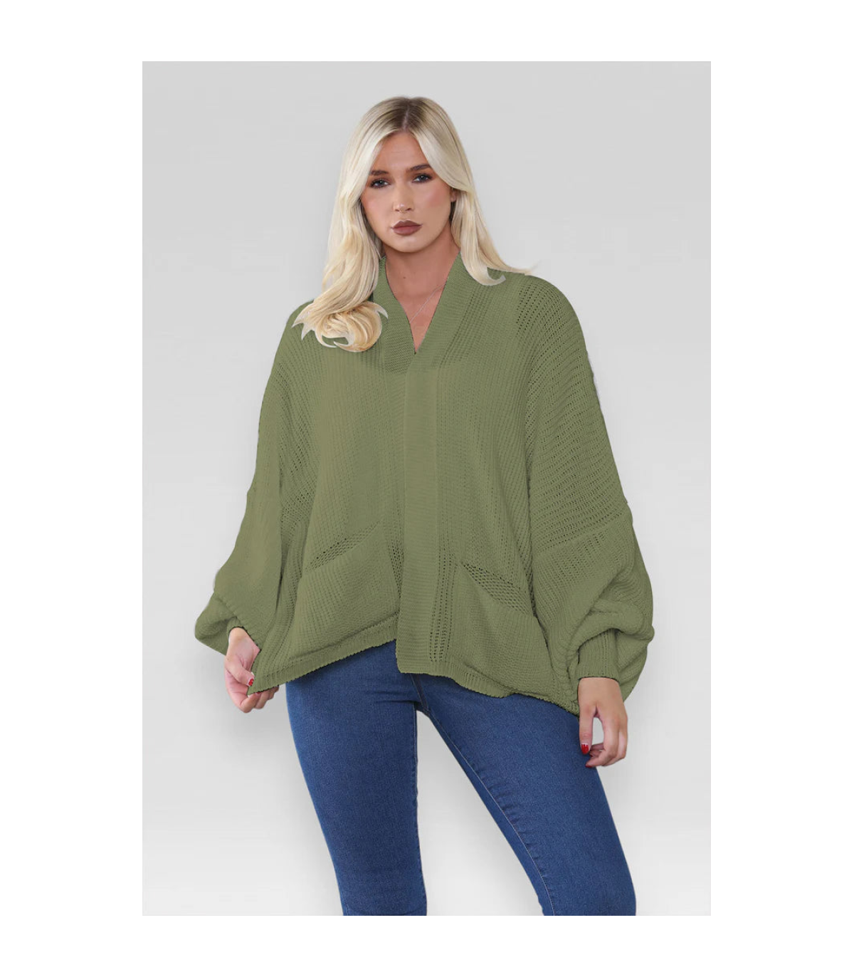 Stay cozy and stylish with our Ladies Oversized Cropped Short Balloon Pocket Chunky Knitted Cardigan. The chunky knit and balloon pockets provide both warmth and a trendy look. Perfect for layering, this cardigan is a must-have for any fashion-forward wardrobe.