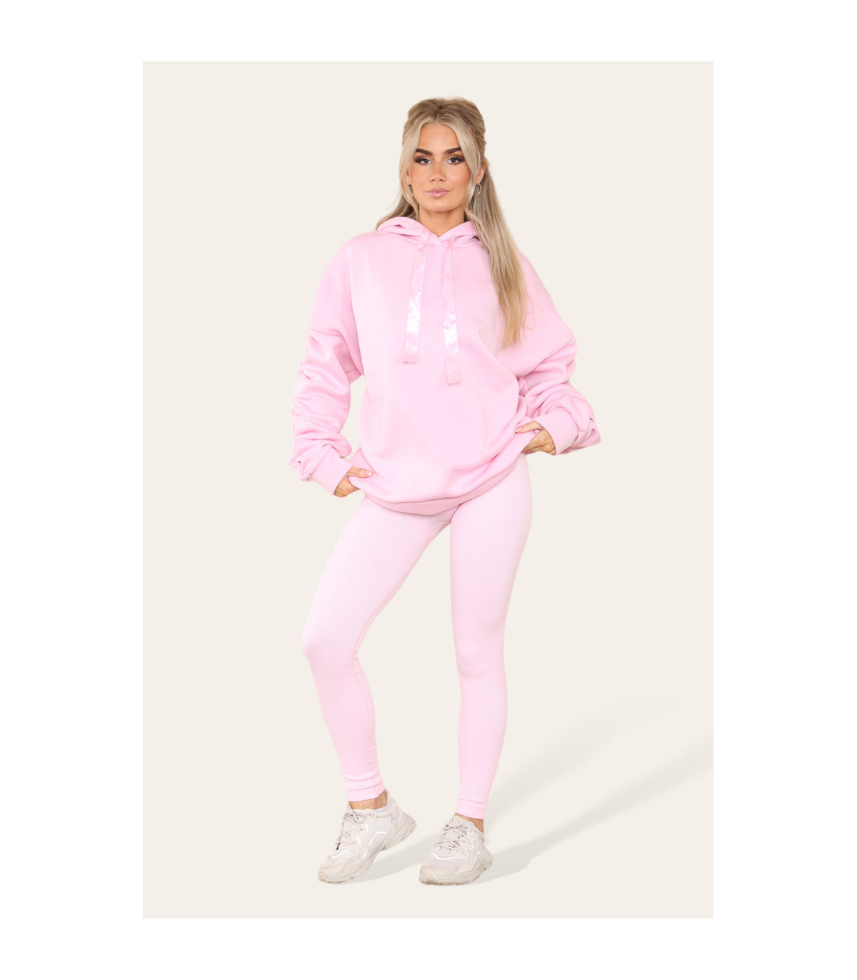 Ruched Sleeves Plus Size Hoodie with Satin Ribbon - Stylish Comfort