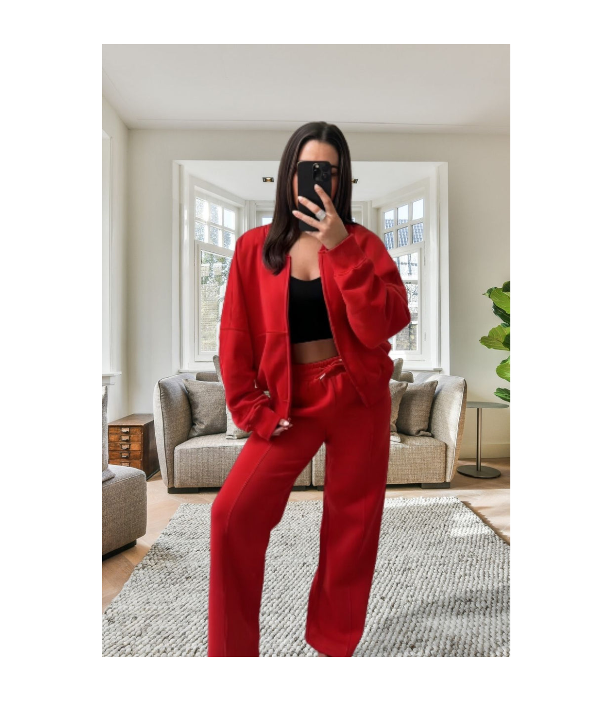 Update your athleisure look with the Bomber New Style Oversized Fleece Zipper and Wide Leg Tracksuit. Made with high-quality fleece material, this tracksuit offers ultimate comfort and warmth. The oversized bomber jacket adds a trendy touch while the wide leg pants provide a comfortable and stylish fit. Elevate your activewear wardrobe with this stylish tracksuit.
