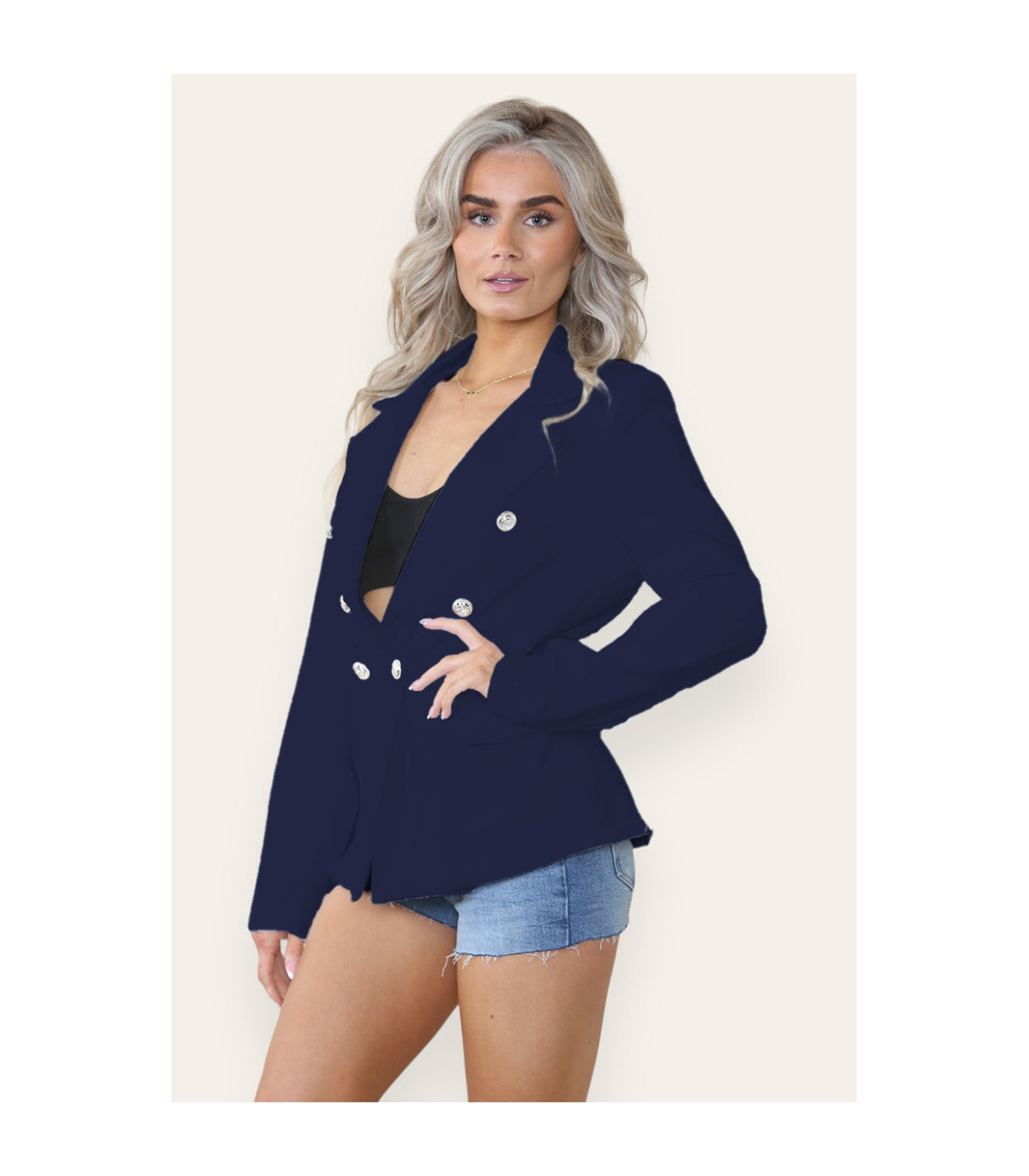 Fitted Linned Double Gold Button Collared Blazer Jacket