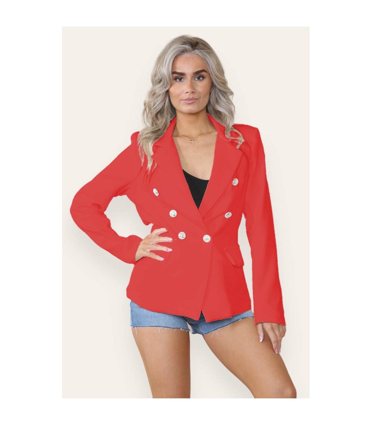 Fitted Linned Double Gold Button Collared Blazer Jacket