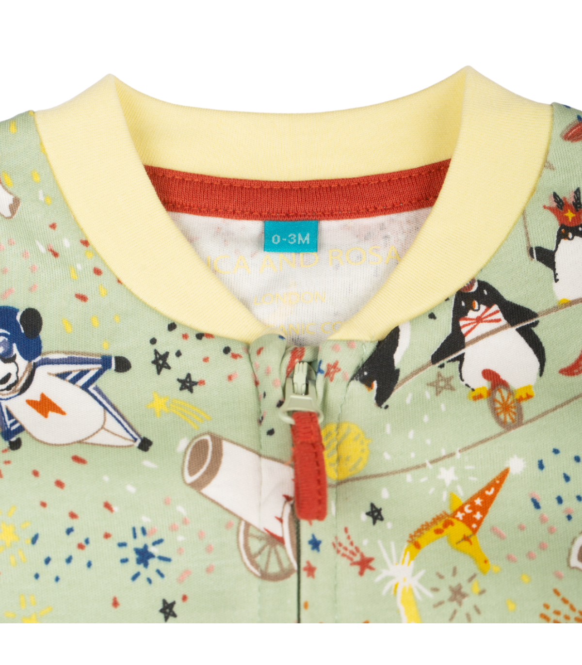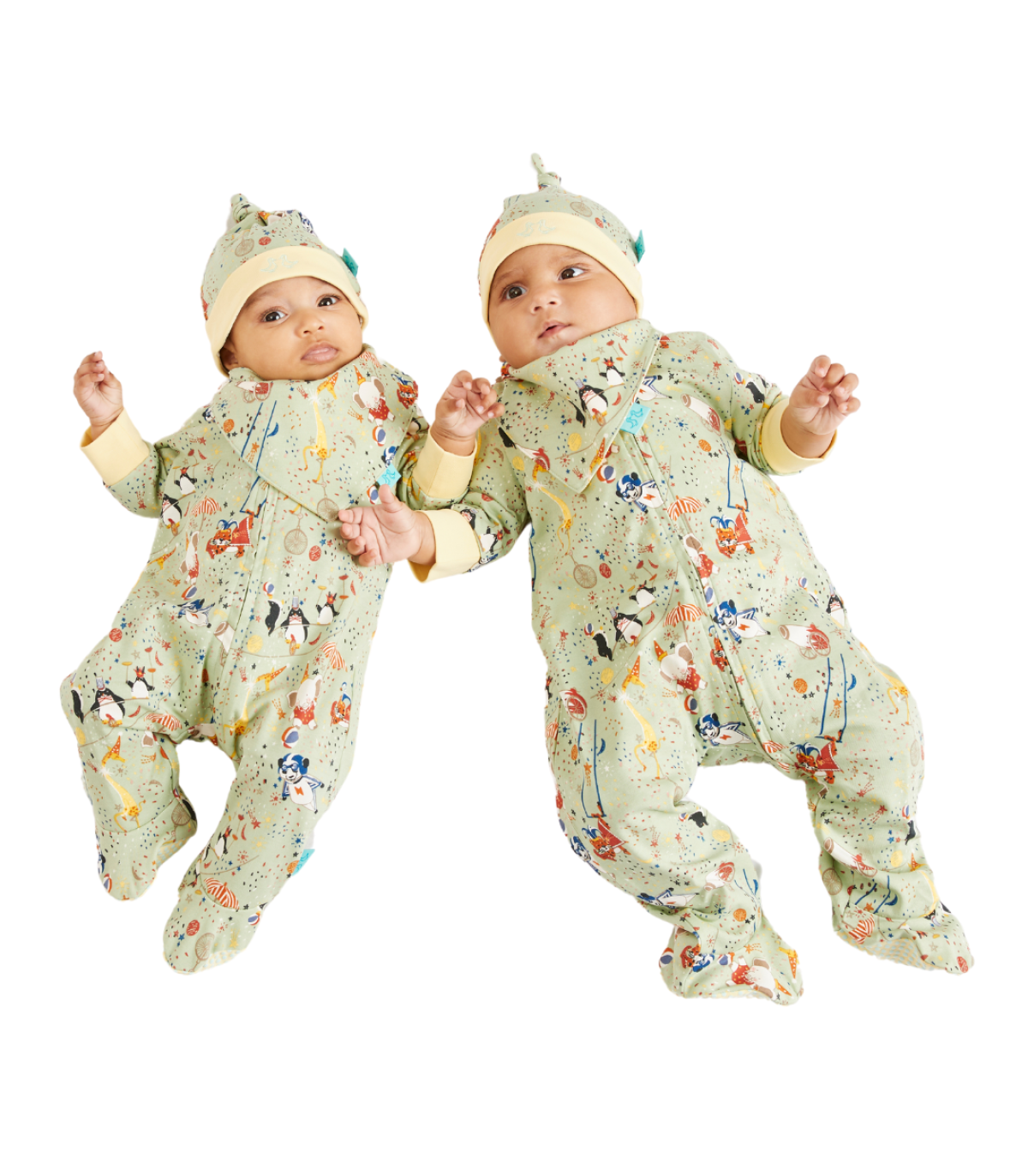 Dress your little treasure in Luca and Rosa London’s premium matching Showman baby vests, baby grows and baby hats. Tenderly crafted from beautiful organic cotton blend, they feature a multi-popper front opening and contrast colour cuffs.