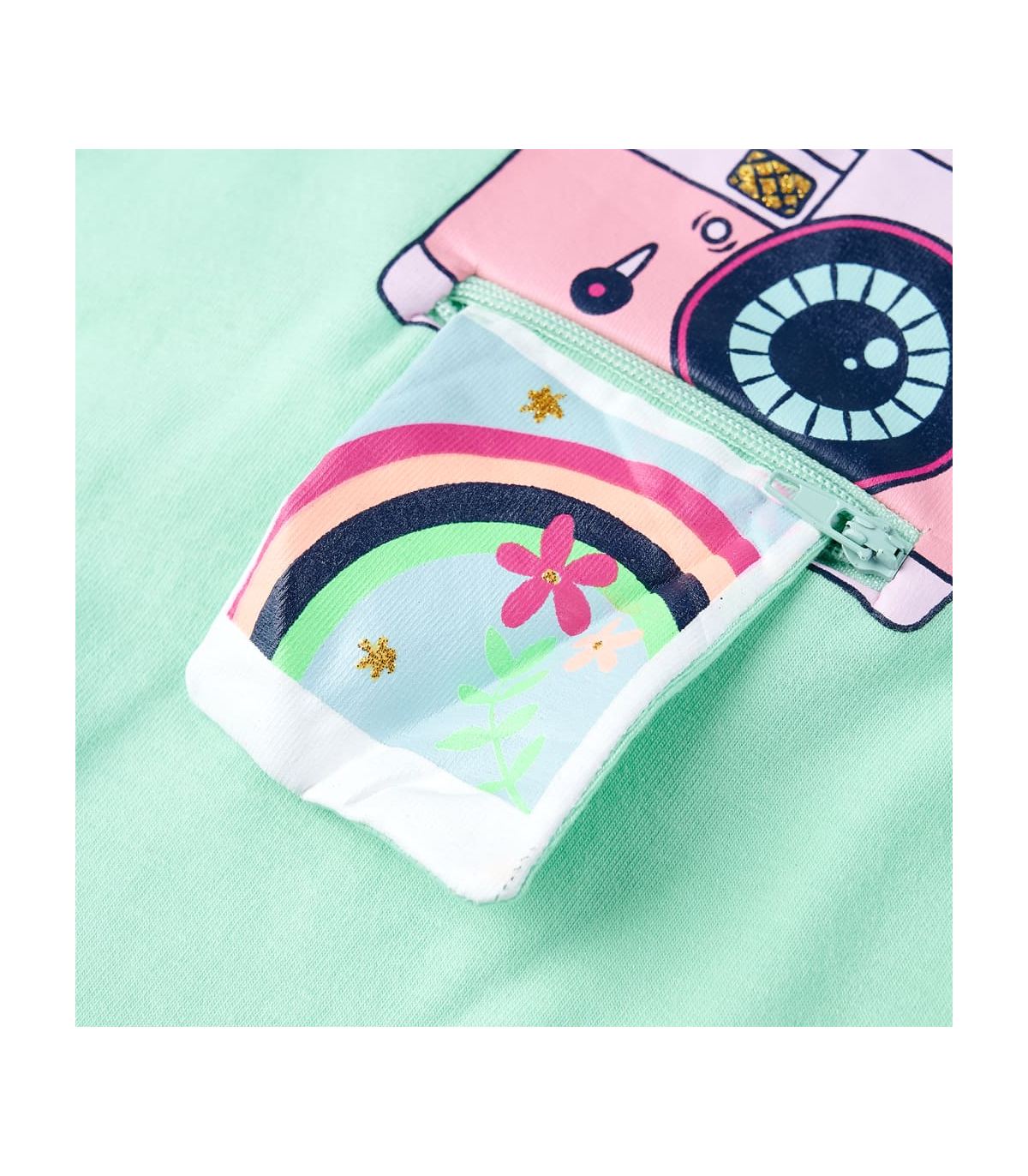 Our children’s clothing line is all about affordable, high-quality, and durable everyday wear for kids aged 1.5 to 10. Our range includes jackets, sweaters, shirts, and many more, with a variety in style, size, and colour. Following the high-quality standard in the market, we are using high-grade materials and advanced manufacturing techniques. This kids' T-shirt has short sleeves, a round neckline, and a straight model. The children's T-shirt features a camera and a pocket on the front. The T-shirt for kids is made of cotton and elastane for a soft and comfortable touch. Good to know: This size chart in the picture provides measurements for kids aged 1.5 to 10, covering the height, chest, waist, and hip. You can easily find the right fit for your child.