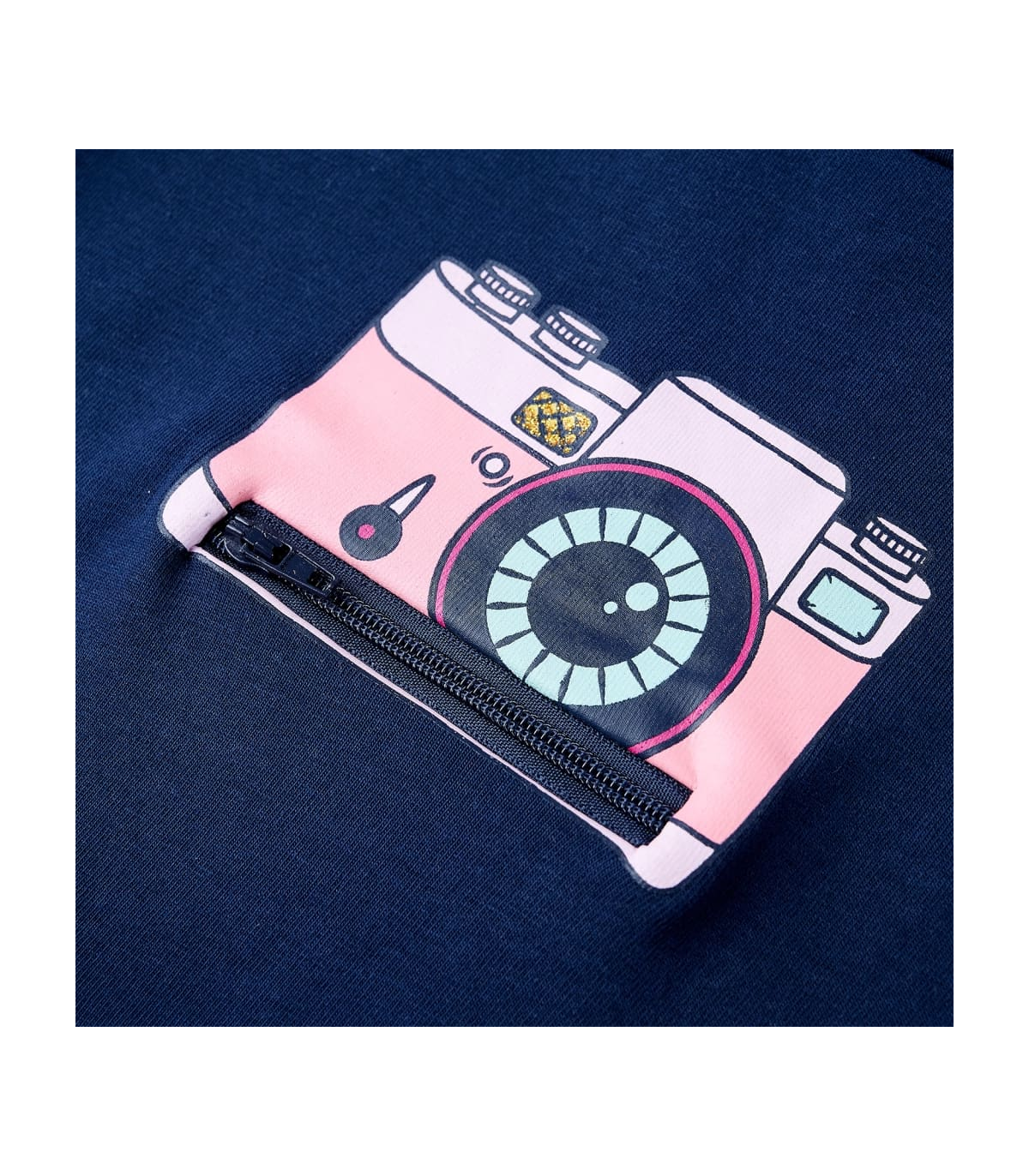 Our children’s clothing line is all about affordable, high-quality, and durable everyday wear for kids aged 1.5 to 10. Our range includes jackets, sweaters, shirts, and many more, with a variety in style, size, and colour. Following the high-quality standard in the market, we are using high-grade materials and advanced manufacturing techniques. This kids' T-shirt has short sleeves, a round neckline, and a straight model. The children's T-shirt features a camera and a pocket on the front. The T-shirt for kids is made of cotton and elastane for a soft and comfortable touch. Good to know: This size chart in the picture provides measurements for kids aged 1.5 to 10, covering the height, chest, waist, and hip. You can easily find the right fit for your child.