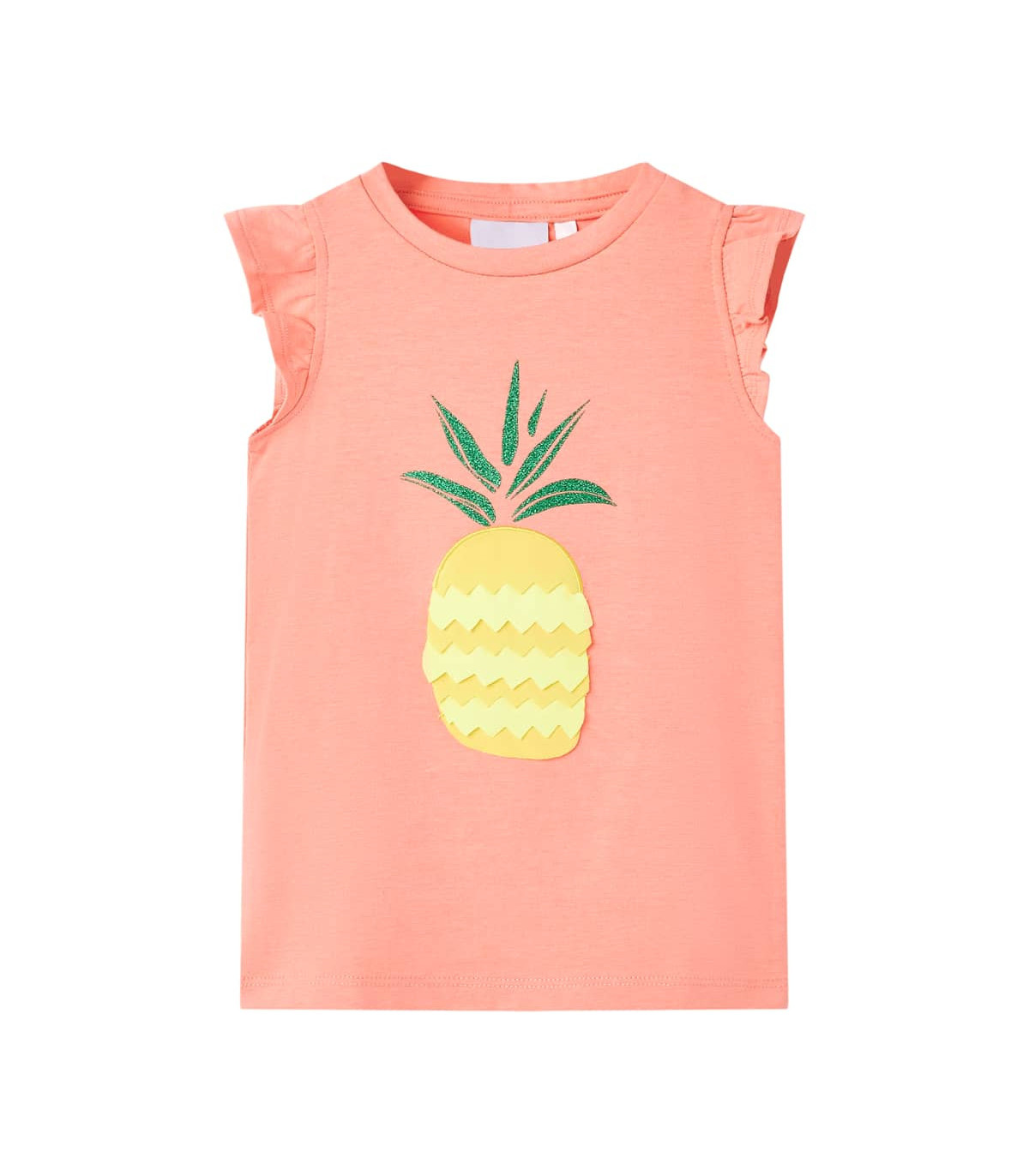 Our children’s clothing line is all about affordable, high-quality, and durable everyday wear for kids aged 1.5 to 10. Our range includes jackets, sweaters, shirts, and many more, with a variety in style, size, and colour. Following the high-quality standard in the market, we are using high-grade materials and advanced manufacturing techniques. This sleeveless kids' T-shirt has a round neckline, and a straight model. The children's T-shirt features pineapple on the front. The T-shirt for kids is made of cotton and elastane for a soft and comfortable touch. Good to know: This size chart in the picture provides measurements for kids aged 1.5 to 10, covering the height, chest, waist, and hip. You can easily find the right fit for your child.
