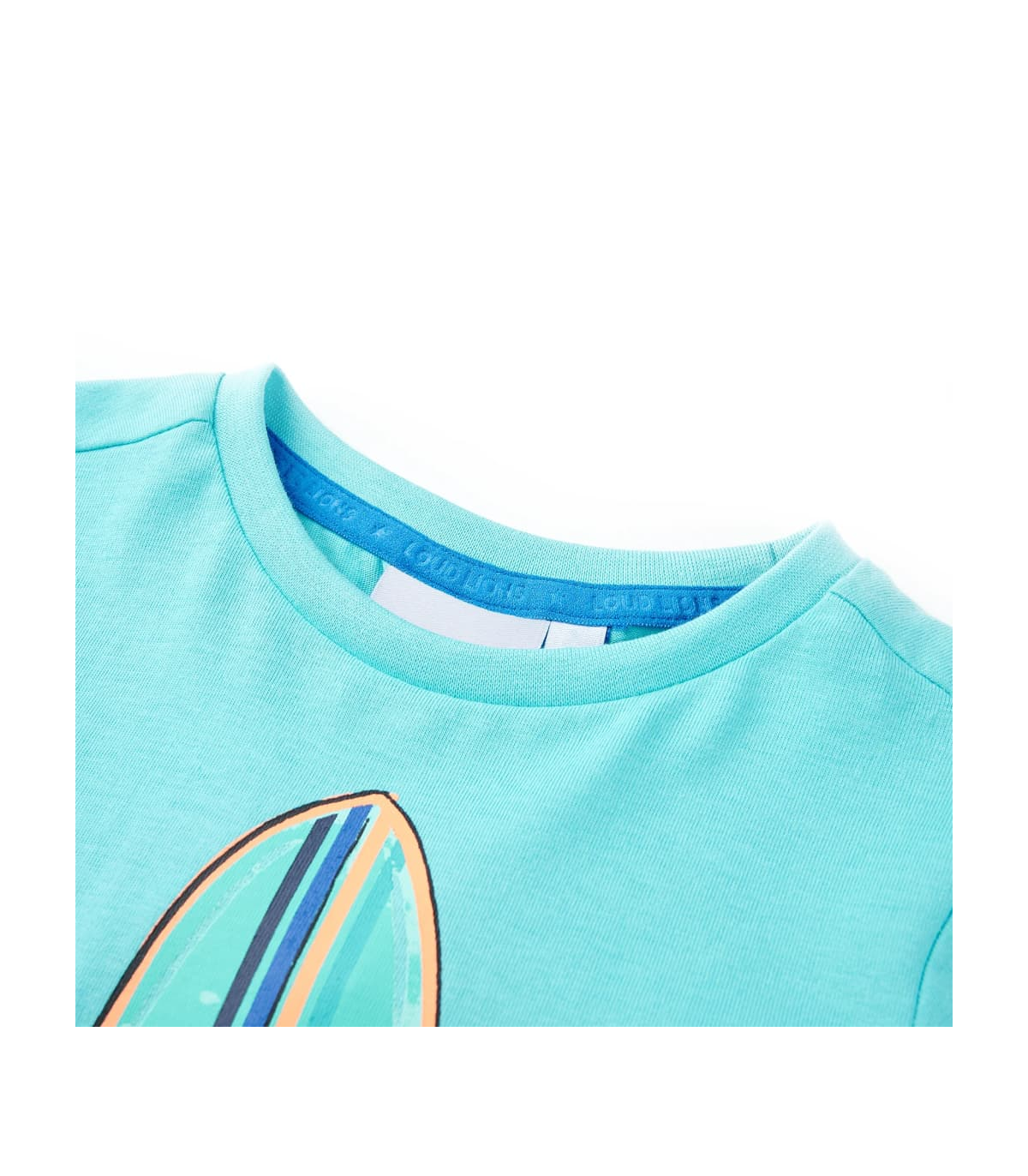 Our children's clothing line is all about affordable, high-quality, and durable everyday wear for kids aged 1.5 to 10. Our range includes jackets, sweaters, shirts, and many more, with a variety in style, size, and colour. Following the high-quality standard in the market, we are using high-grade materials and advanced manufacturing techniques. This kids' T-shirt has short sleeves, a round neckline, and a straight model. The children's T-shirt features a colorful surfboard on the front. The T-shirt for kids is made of 100% cotton for a soft and comfortable touch. Good to know: This size chart in the picture provides measurements for kids aged 1.5 to 10, covering the height, chest, waist, and hip. You can easily find the right fit for your child.