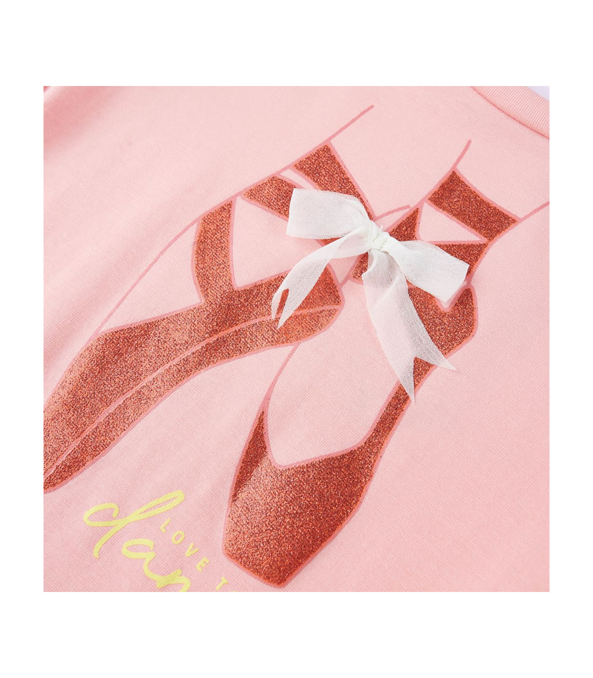 Our children’s clothing line is all about affordable, high-quality, and durable everyday wear for kids aged 1.5 to 10. Our range includes jackets, sweaters, shirts, and many more, with a variety in style, size, and colour. Following the high-quality standard in the market, we are using high-grade materials and advanced manufacturing techniques. This kids' T-shirt has short sleeves, a round neckline, and a straight model. The children's T-shirt features ballet shoes on the front. The T-shirt for kids is made of cotton and elastane for a soft and comfortable touch. Good to know: This size chart in the picture provides measurements for kids aged 1.5 to 10, covering the height, chest, waist, and hip. You can easily find the right fit for your child.