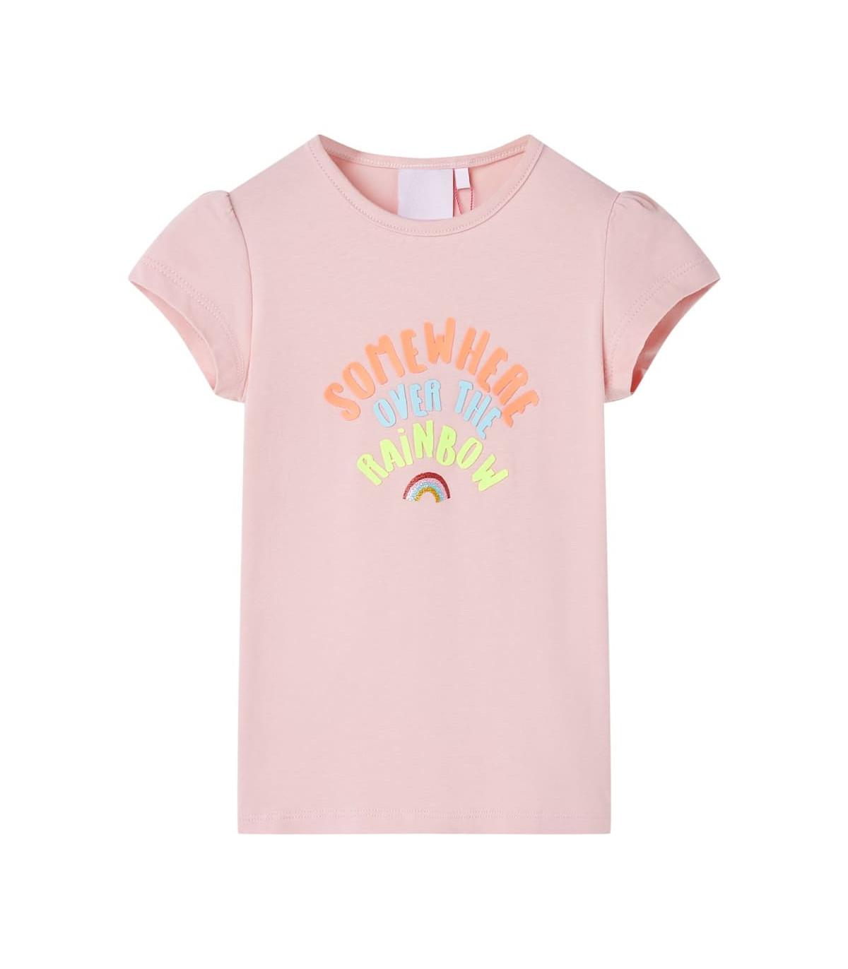 Our children’s clothing line is all about affordable, high-quality, and durable everyday wear for kids aged 1.5 to 10. Our range includes jackets, sweaters, shirts, and many more, with a variety in style, size, and colour. Following the high-quality standard in the market, we are using high-grade materials and advanced manufacturing techniques. This kids' T-shirt has short sleeves, a round neckline, and a straight model. The children's T-shirt features a rainbow and the words “somewhere over the rainbow”. The T-shirt for kids is made of cotton and elastane for a soft and comfortable touch. Good to know: This size chart in the picture provides measurements for kids aged 1.5 to 10, covering the height, chest, waist, and hip. You can easily find the right fit for your child.