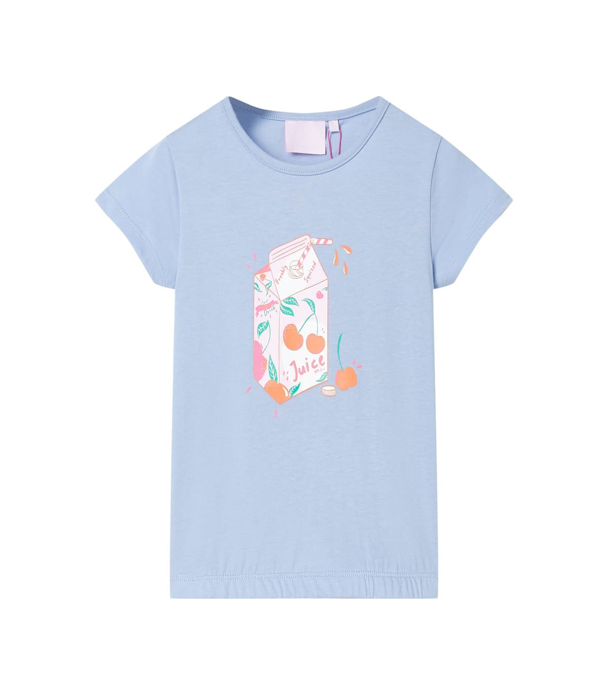 Our children’s clothing line is all about affordable, high-quality, and durable everyday wear for kids aged 1.5 to 10. Our range includes jackets, sweaters, shirts, and many more, with a variety in style, size, and colour. Following the high-quality standard in the market, we are using high-grade materials and advanced manufacturing techniques. This kid's top has short sleeves, a round neckline, and a straight model. This kid's T-shirt features a juice bottle with cherry print. The children's short sleeve T-shirt is made of 100% cotton for a soft and comfortable touch. Good to know: The size chart in the picture provides measurements for kids aged 1.5 to 10, covering the height, chest, waist, and hip. You can easily find the right fit for your child.