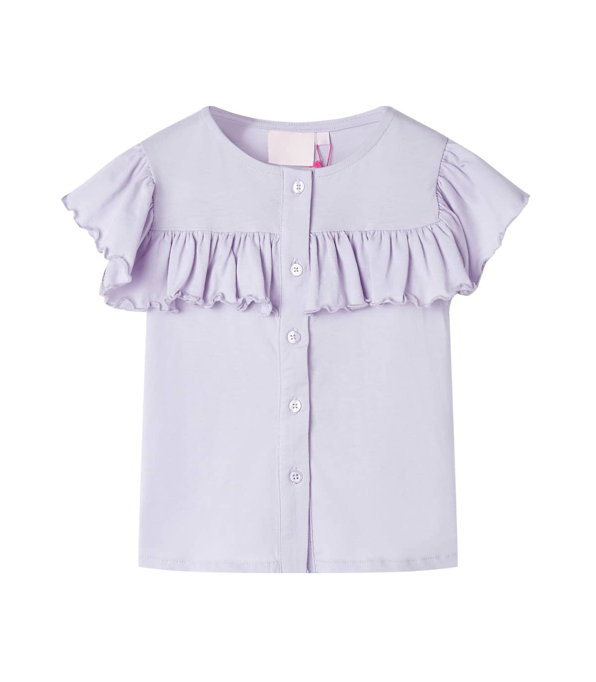 Our children’s clothing line is all about affordable, high-quality, and durable everyday wear for kids aged 1.5 to 10. Our range includes jackets, sweaters, shirts, and many more, with a variety in style, size, and colour. Following the high-quality standard in the market, we are using high-grade materials and advanced manufacturing techniques. This kids' T-shirt has short sleeves, a round neckline, and closes with a row of buttons on the front. The children's T-shirt has nice ruffles on the shoulders and chest. The T-shirt for kids is made of cotton for a soft and comfortable touch. Good to know: This size chart in the picture provides measurements for kids aged 1.5 to 10, covering the height, chest, waist, and hip. You can easily find the right fit for your child.