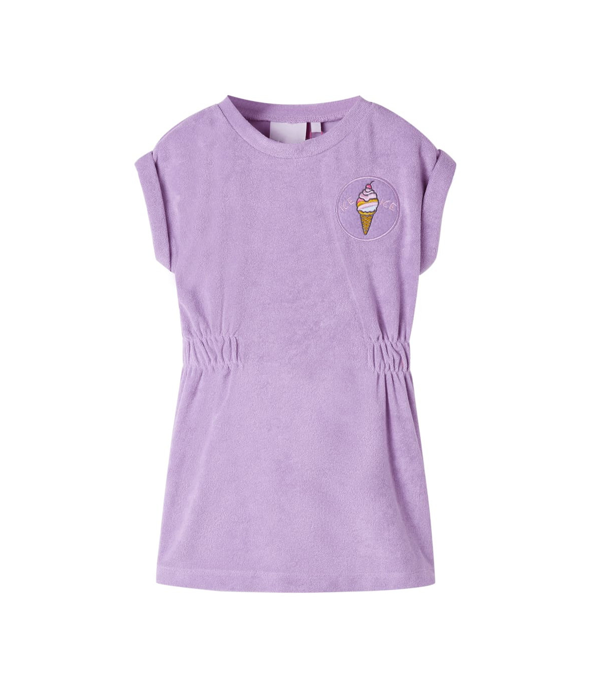 Our children's clothing line is all about affordable, high-quality, and durable everyday wear for kids aged 1.5 to 10. Our range includes jackets, sweaters, shirts, and many more, with a variety in style, size, and colour. Following the high-quality standard in the market, we are using high-grade materials and advanced manufacturing techniques. This kids' dress has a round neckline, short sleeves with sewn-in turn-ups, and a drawstring waistband. This children's dress is designed with embroidery ice cream on the chest. The kids' short dress is made from soft material that includes 75% cotton and 25% polyester for comfort and breathability. Good to know: The size chart in the picture provides measurements for kids aged 1.5 to 10, covering the height, chest, waist, and hip. You can easily find the right fit for your child.