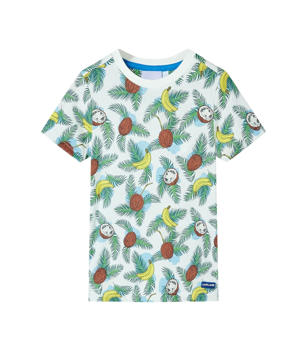 Our children's clothing line is all about affordable, high-quality, and durable everyday wear for kids aged 1.5 to 10. Our range includes jackets, sweaters, shirts, and many more, with a variety in style, size, and colour. Following the high-quality standard in the market, we are using high-grade materials and advanced manufacturing techniques. This kids' T-shirt has short sleeves, a round neckline, and a straight model. The children's T-shirt is printed with coconuts, bananas, and leaves. The T-shirt for kids is made of 100% cotton for a soft and comfortable touch. Good to know: This size chart in the picture provides measurements for kids aged 1.5 to 10, covering the height, chest, waist, and hip. You can easily find the right fit for your child.