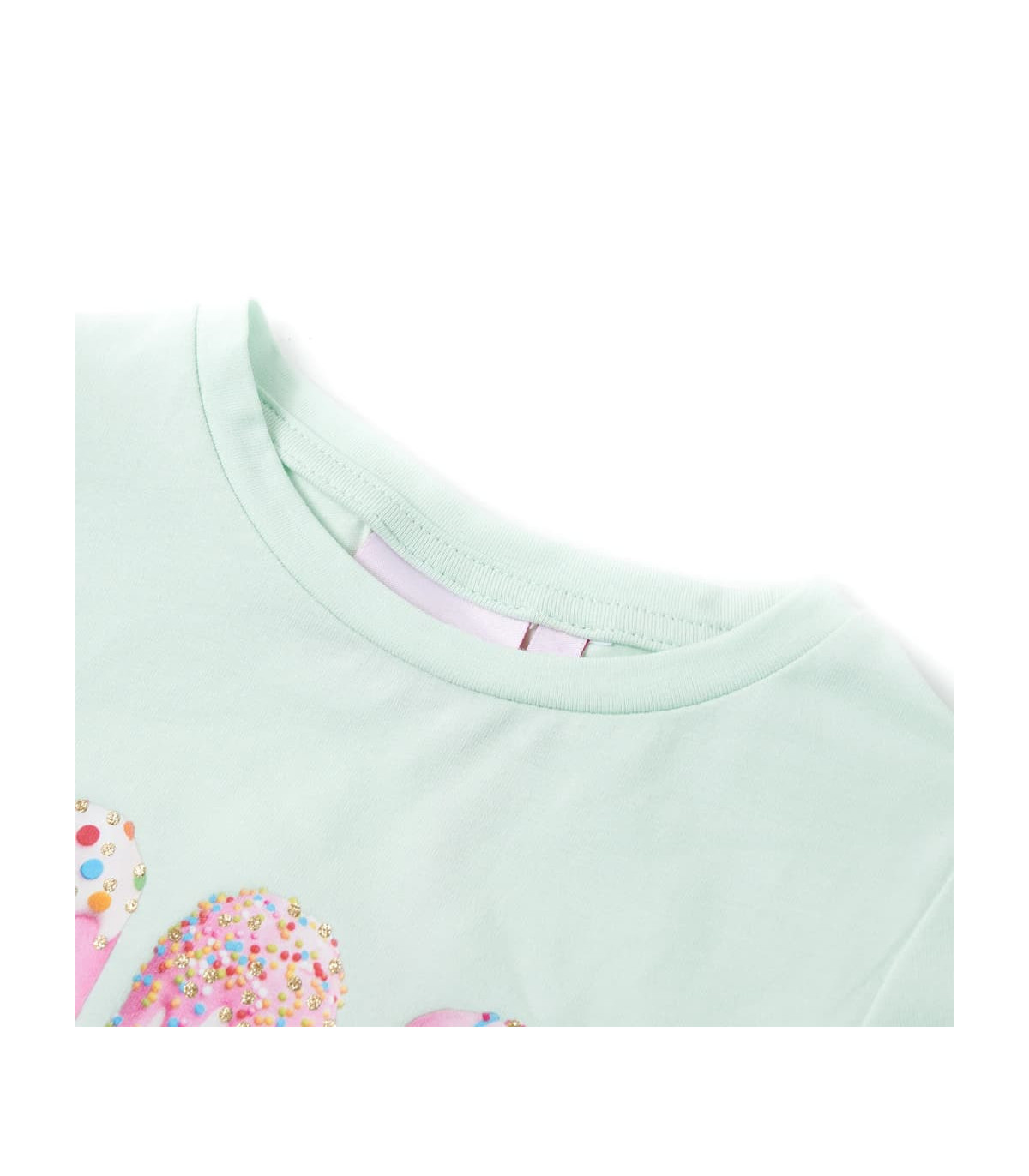 Our children’s clothing line is all about affordable, high-quality, and durable everyday wear for kids aged 1.5 to 10. Our range includes jackets, sweaters, shirts, and many more, with a variety in style, size, and colour. Following the high-quality standard in the market, we are using high-grade materials and advanced manufacturing techniques. This kid's T-shirt has short sleeves, a round neckline, and a straight model. This kid's T-shirt features ice-creams. The children's short sleeve T-shirt is made of 95% cotton for a soft and comfortable touch. Good to know: The size chart in the picture provides measurements for kids aged 1.5 to 10, covering the height, chest, waist, and hip. You can easily find the right fit for your child.