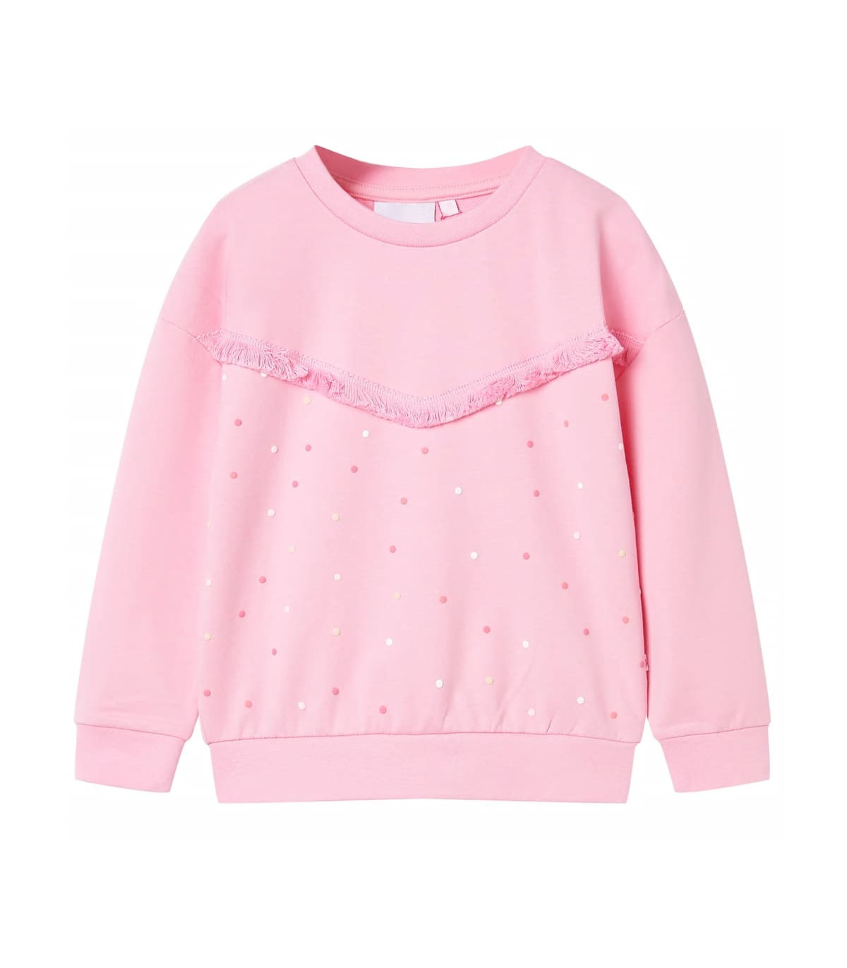 Our children’s clothing line is all about affordable, high-quality, and durable everyday wear for kids aged 1.5 to 10. Our range includes jackets, sweaters, shirts, and many more, with a variety in style, size, and colour. Following the high-quality standard in the market, we are using high-grade materials and advanced manufacturing techniques. This kids' sweatshirt has a round neck, long sleeves, colourful polka dots and fringes design. This blue sweatshirt is made of 95% cotton and 5% elastane that is soft and comfortable to touch. Good to know: The size chart in the picture provides measurements for kids aged 1.5 to 10, covering the height, chest, waist, and hip. You can easily find the right fit for your child.