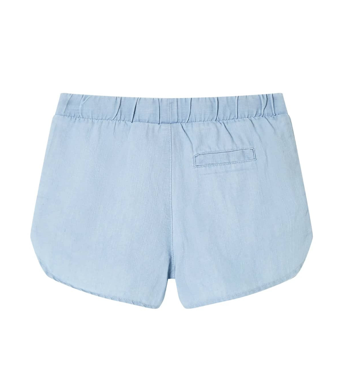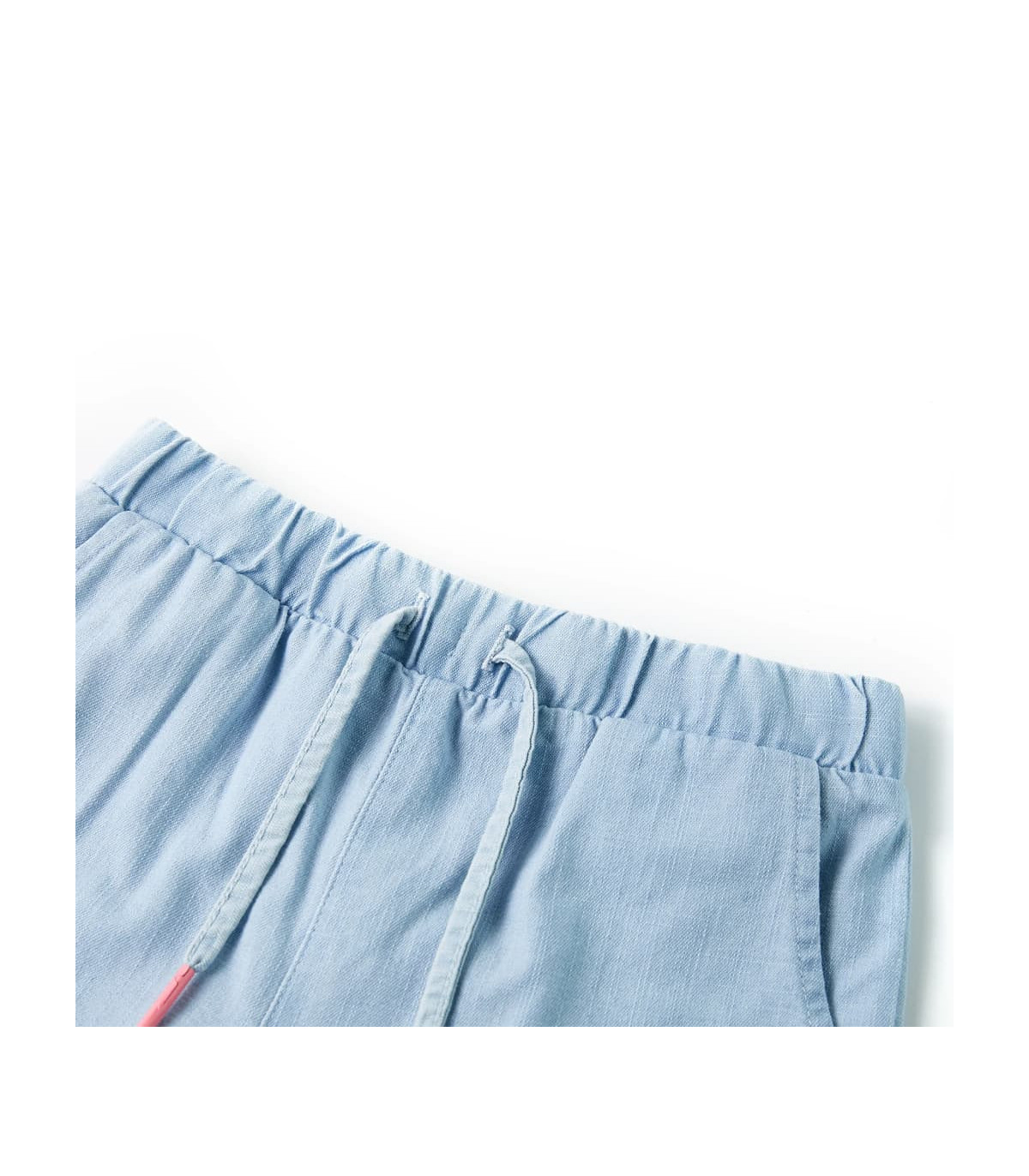 Our children's clothing line is all about affordable, high-quality, and durable everyday wear for kids aged 1.5 to 10. Our range includes jackets, sweaters, shirts, and many more, with a variety in style, size, and colour. Following the high-quality standard in the market, we are using high-grade materials and advanced manufacturing techniques. This pair of kids' shorts has an elastic drawstring waistband and a fake back pocket. The children's shorts are light denim blue which is fashionable and can go with any other clothes. The shorts for kids are made from soft material that includes 100% cotton for comfort and breathability. Good to know: This size chart in the picture provides measurements for kids aged 1.5 to 10, covering the height, chest, waist, and hip. You can easily find the right fit for your child.