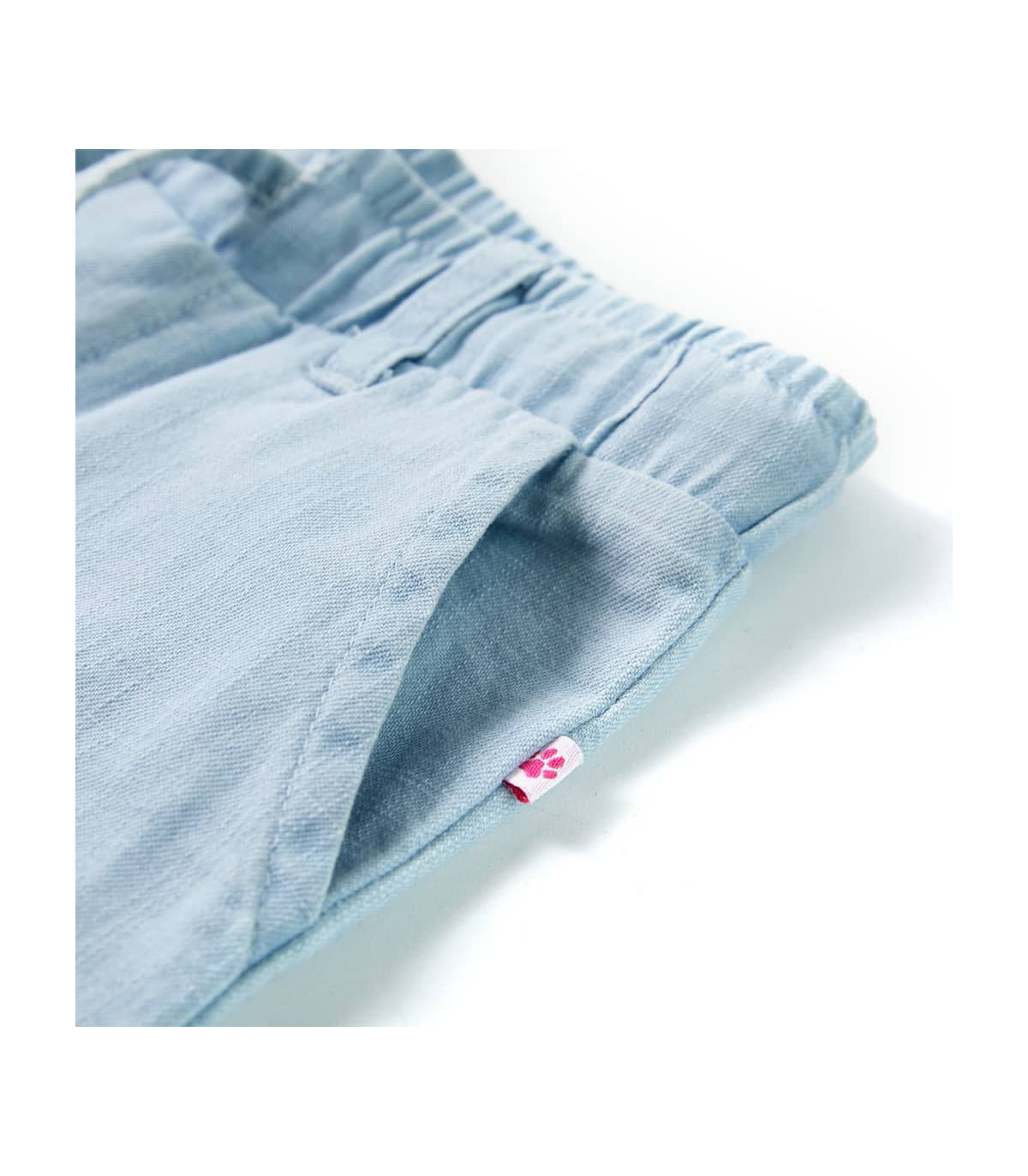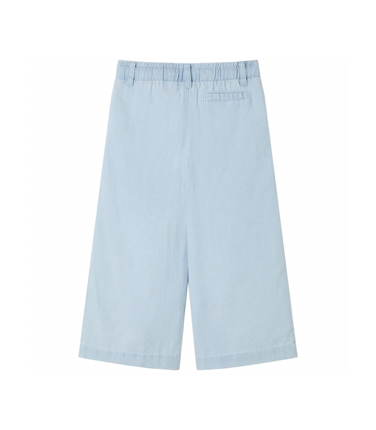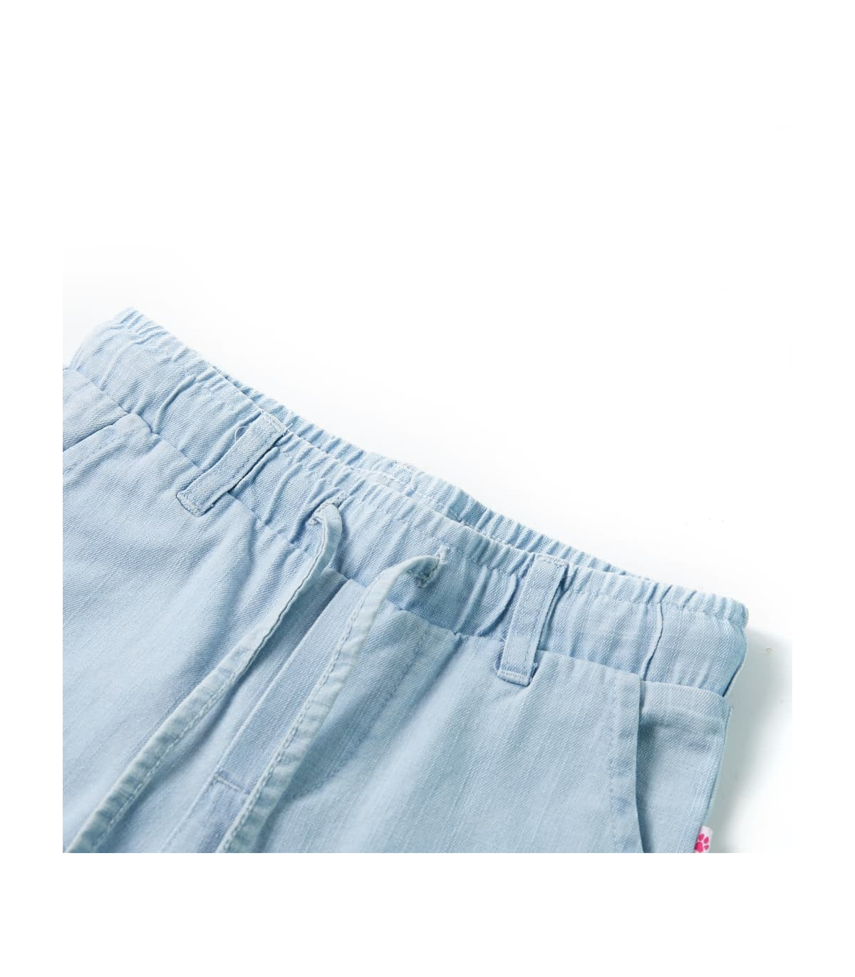 Our children's clothing line is all about affordable, high-quality, and durable everyday wear for kids aged 1.5 to 10. Our range includes jackets, sweaters, shirts, and many more, with a variety in style, size, and colour. Following the high-quality standard in the market, we are using high-grade materials and advanced manufacturing techniques. This pair of kids' pants has wide legs, an elastic waistband and two front pockets. The children's pants are soft denim blue which is fashionable and can go with any other clothes. The children's wide leg pants are made from 100% cotton for comfort, breathability and durability. Good to know: This size chart in the picture provides measurements for kids aged 1.5 to 10, covering the height, chest, waist, and hip. You can easily find the right fit for your child.