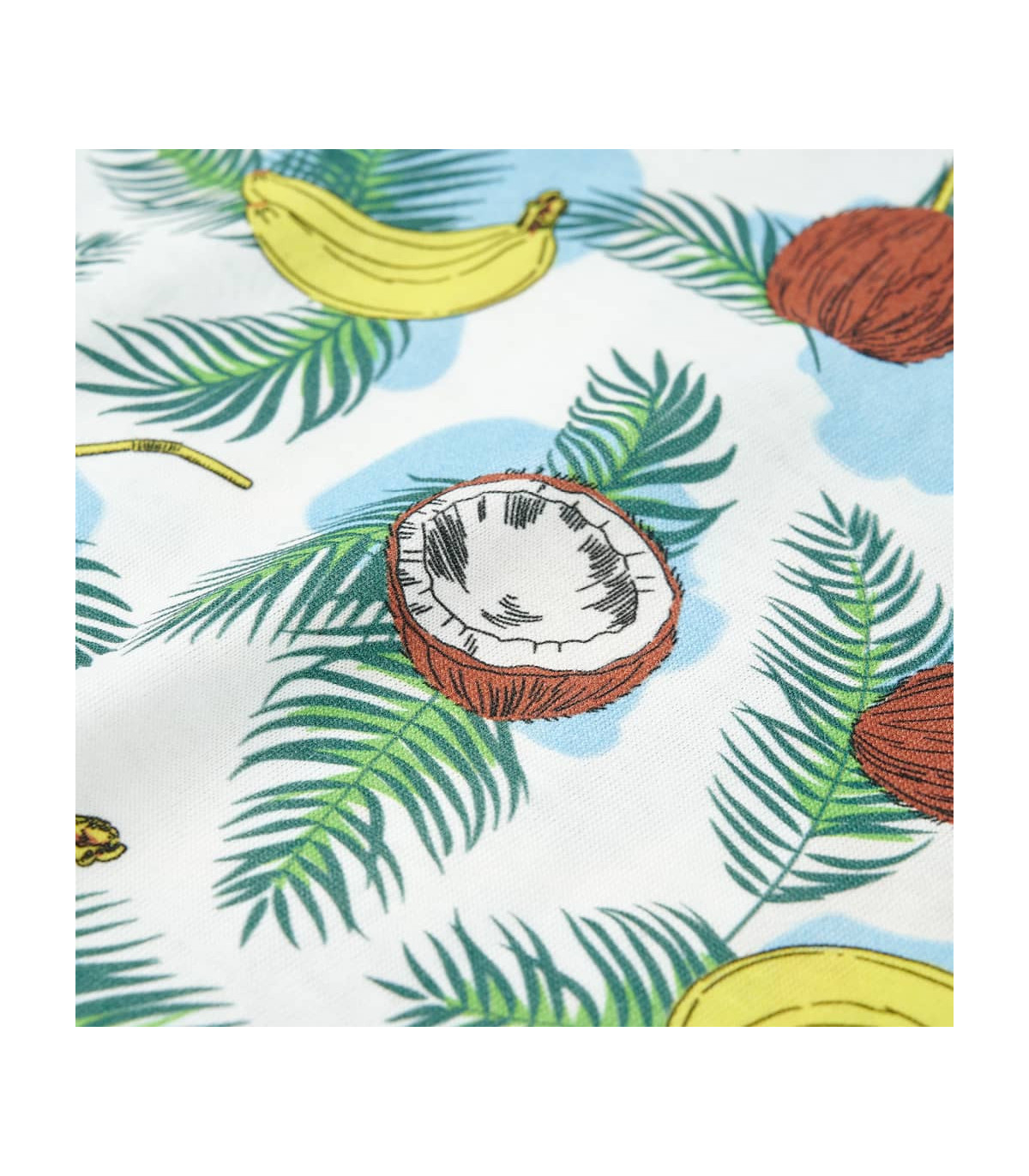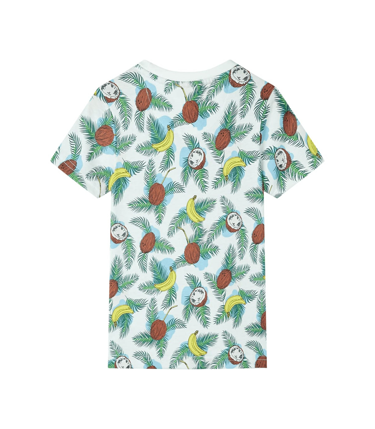 Our children's clothing line is all about affordable, high-quality, and durable everyday wear for kids aged 1.5 to 10. Our range includes jackets, sweaters, shirts, and many more, with a variety in style, size, and colour. Following the high-quality standard in the market, we are using high-grade materials and advanced manufacturing techniques. This kids' T-shirt has short sleeves, a round neckline, and a straight model. The children's T-shirt is printed with coconuts, bananas, and leaves. The T-shirt for kids is made of 100% cotton for a soft and comfortable touch. Good to know: This size chart in the picture provides measurements for kids aged 1.5 to 10, covering the height, chest, waist, and hip. You can easily find the right fit for your child.