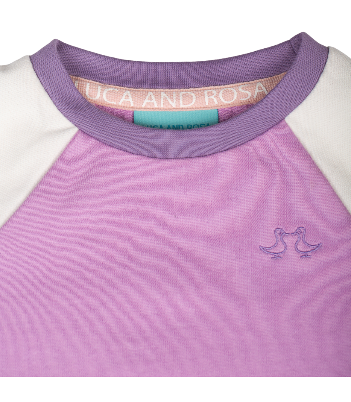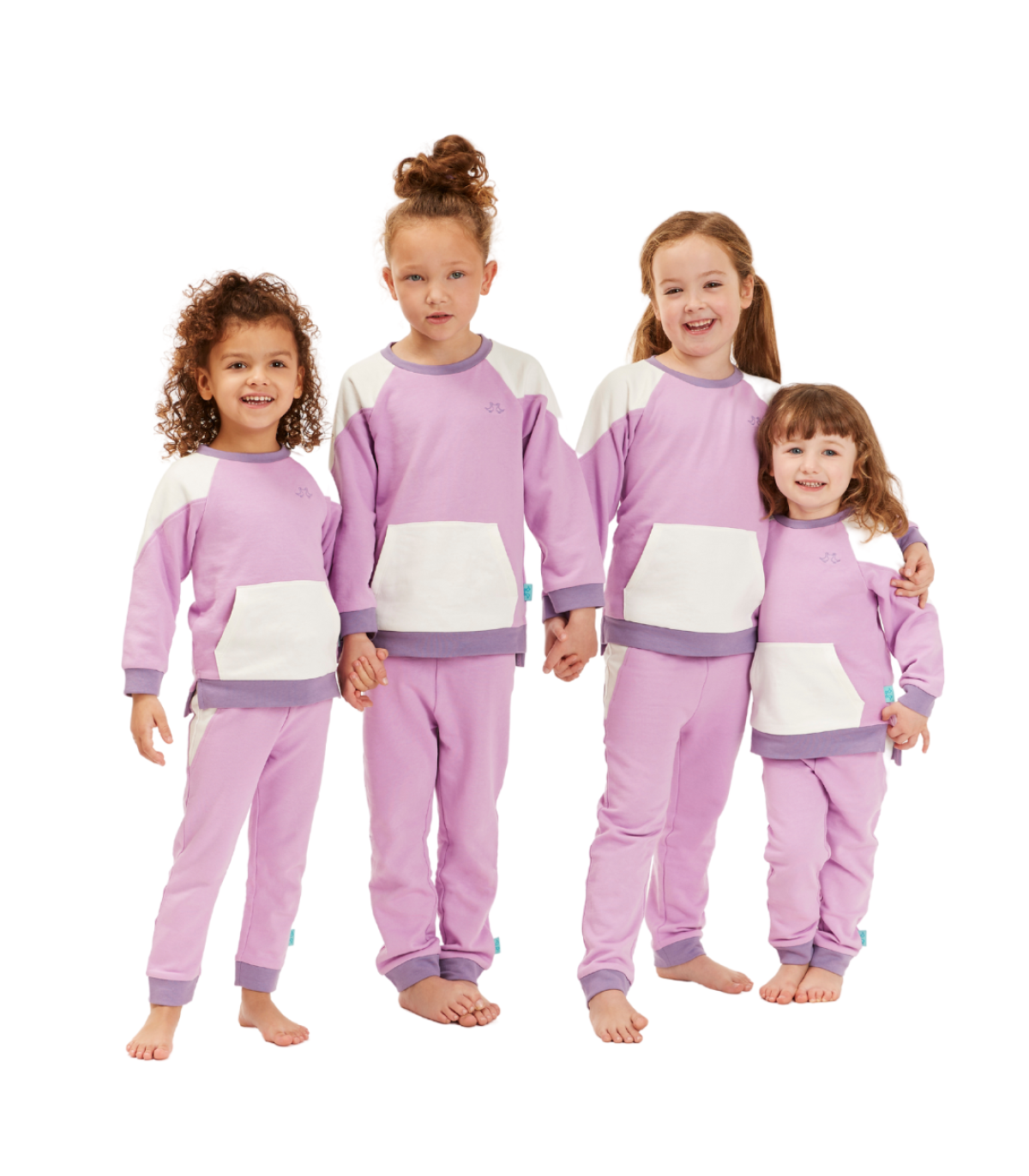 Girls lilac Jersey Lounge Set in Organic Cotton -Relax and play in our soft fun printed two piece lounge set in lilac and white.