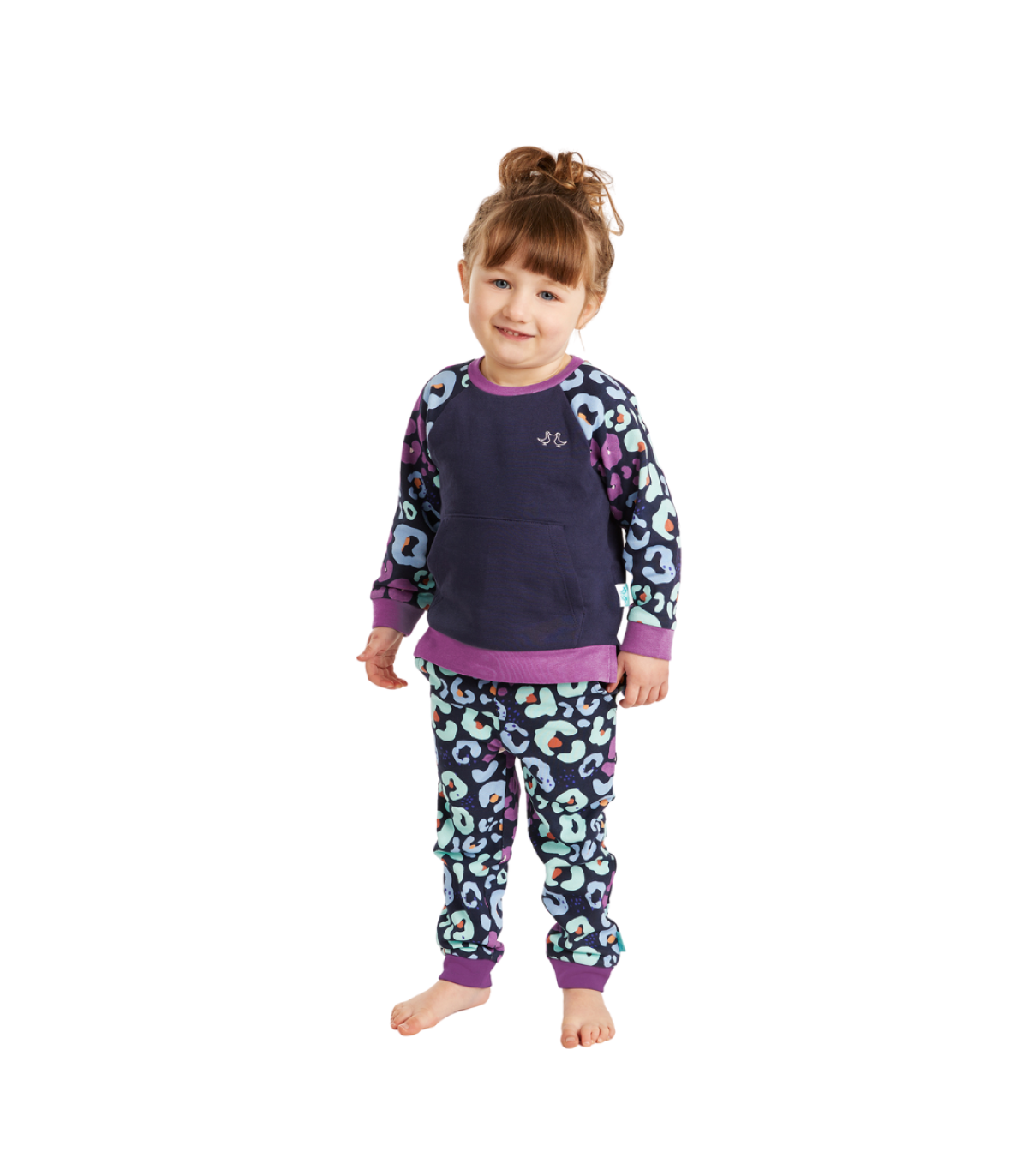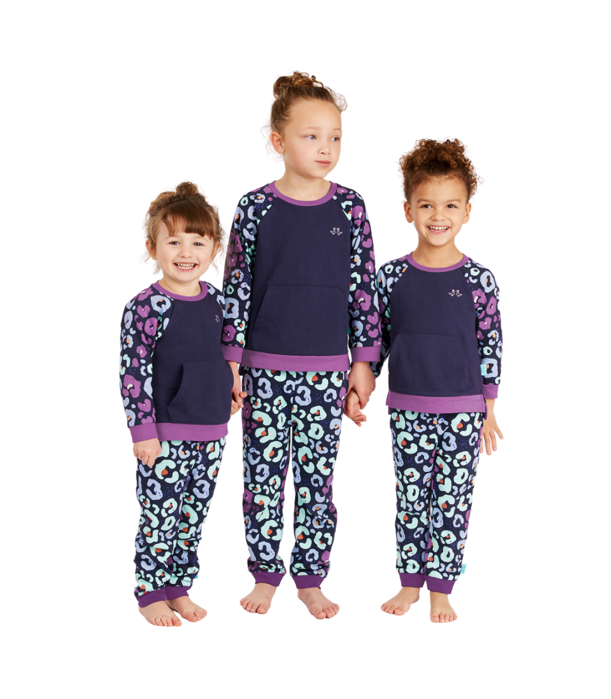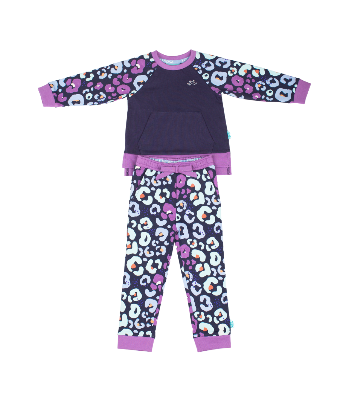 Navy & Purple Girls Leopard Print Lounge Set