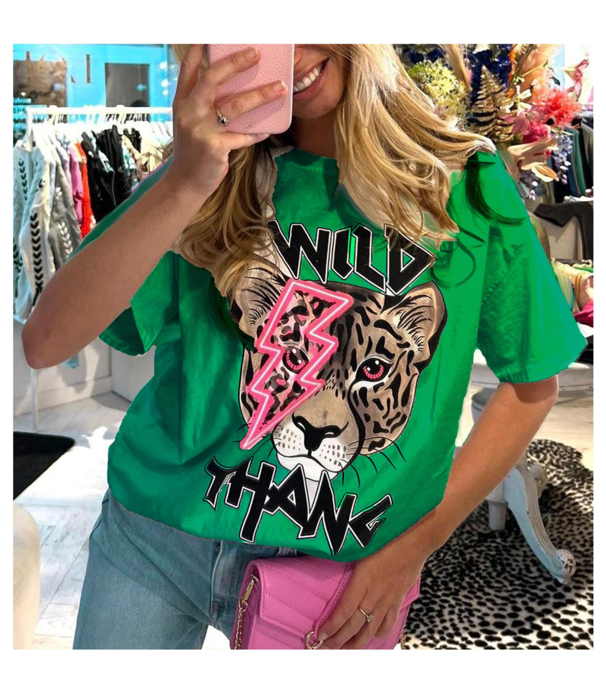 Ladies Oversized Tiger Lightning Wild Thang T Shirt Top is available in multiple colors. Order now and let your wild side shine!
