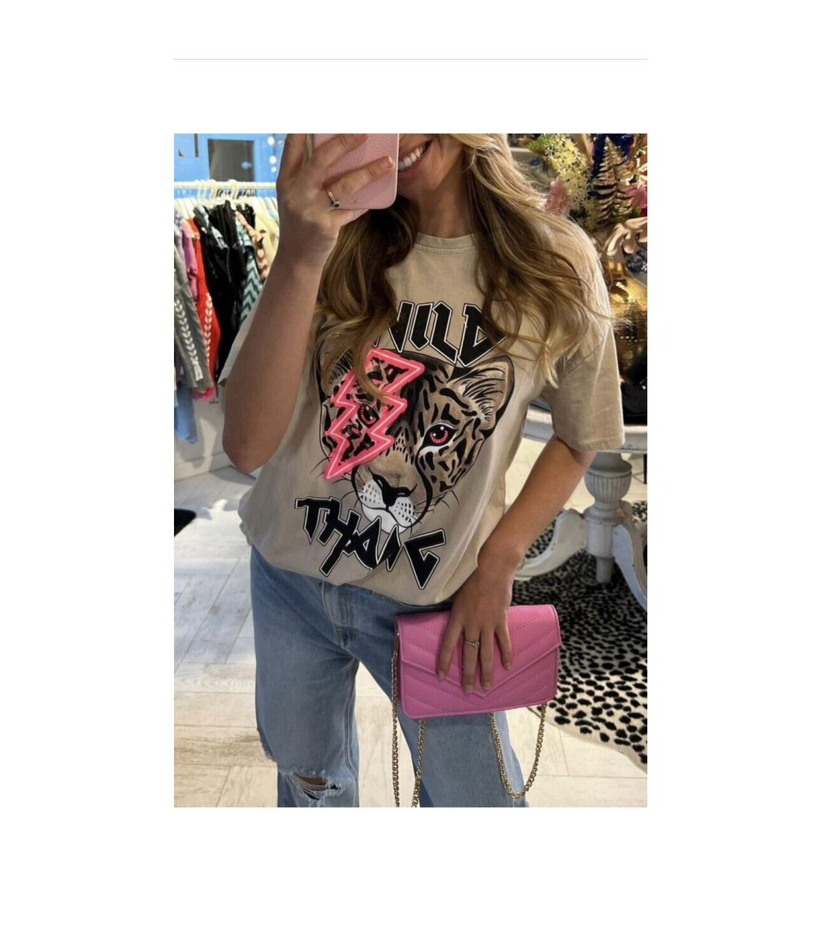 Ladies Oversized Tiger Lightning Wild Thang T Shirt Top is available in multiple colors. Order now and let your wild side shine!