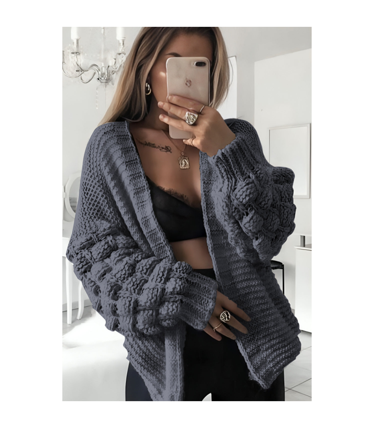 Presenting the Bubble Sleeves Stylish Knitted Cardigan, an essential wardrobe investment. This sophisticated piece features distinctive bubble sleeves that elevate everyday ensembles. Constructed from premium materials, it delivers exceptional comfort and adaptability throughout the day. This contemporary cardigan offers both warmth and refined style, making it an indispensable component for the discerning dresser.
