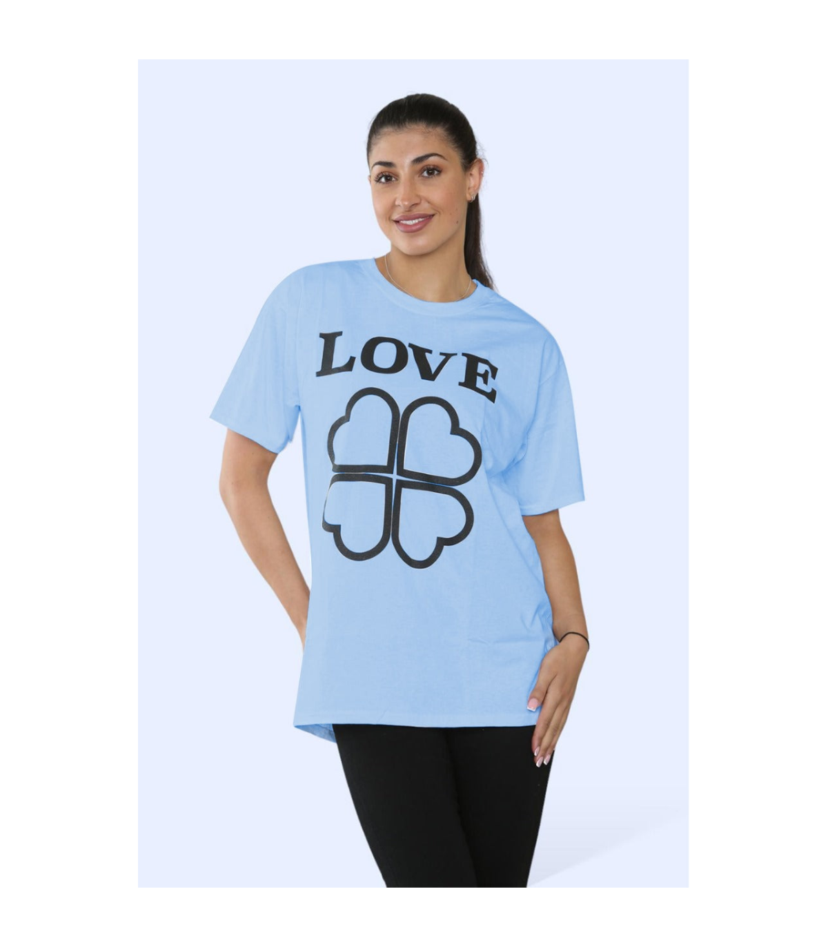 This Ladies Love Printed Short Sleeve T-Shirt Top combines style and comfort into one versatile garment. With its trendy print design and breathable short sleeves, it's perfect for any casual occasion. Made with high-quality materials, this top is a must-have for fashion-forward women looking for both fashion and function in their wardrobe.