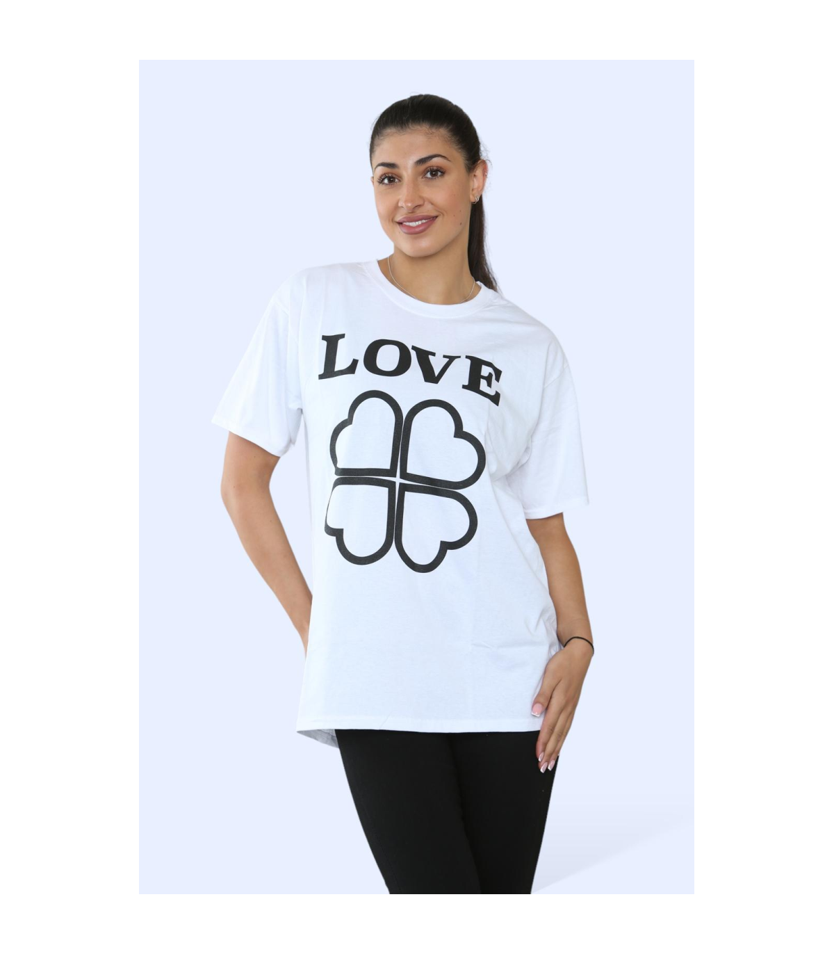 This Ladies Love Printed Short Sleeve T-Shirt Top combines style and comfort into one versatile garment. With its trendy print design and breathable short sleeves, it's perfect for any casual occasion. Made with high-quality materials, this top is a must-have for fashion-forward women looking for both fashion and function in their wardrobe.