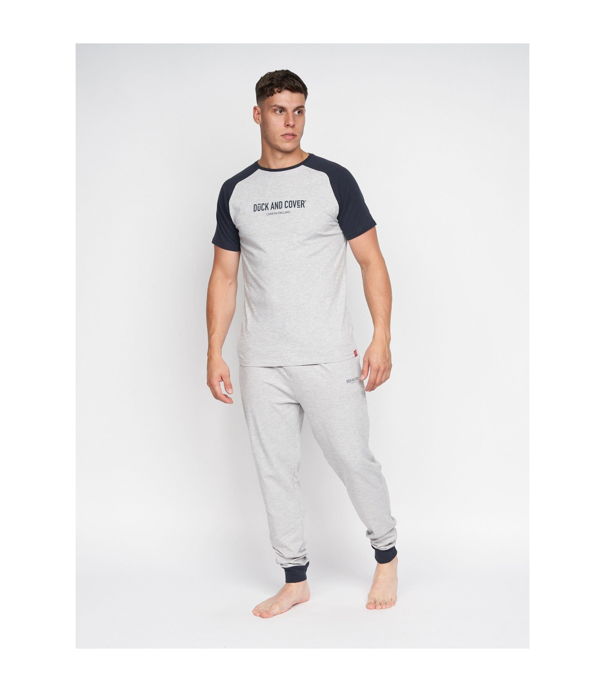 Men's 2-part loungewear set: Men's raglan printed tee and pant lounge set.