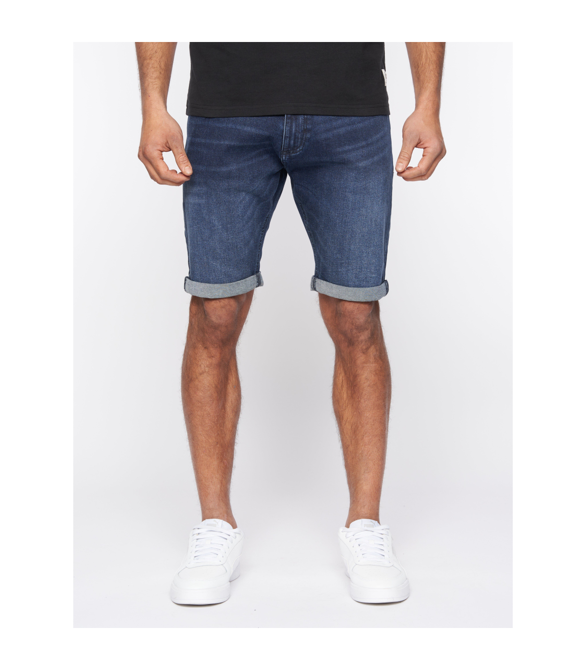 - Men’s denim short with side pocket mouths, button fastening fly, back pockets, printed inner pocket bag linings and brand embossed button.
