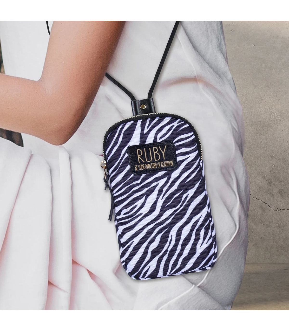 Handy cross body phone bag. Made with eco-friendly material, this attractive bag is perfect for a hands-free night out.