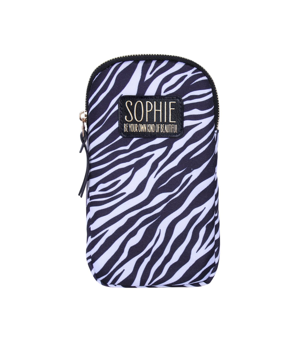 Handy cross body phone bag. Made with eco-friendly material, this attractive bag is perfect for a hands-free night out. There's a secure zippered compartment for your phone and any extras. There's also an open back pocket and an adjustable cross-body strap to fit all. Personalised with names monogram letters and popular generic titles in gold on a leatherette badge. PLEASE NOTE: These items are pre-personalised. The item you receive is the name or title that you have selected. Items are not personalised to order and we do not offer bespoke customisation.