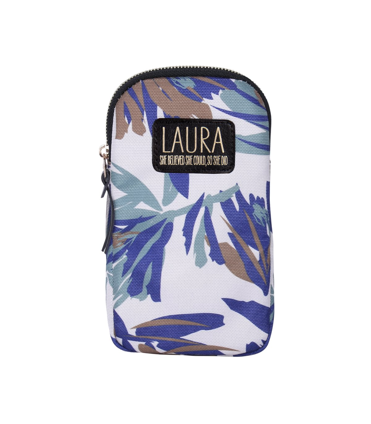 Handy cross body phone bag. Made with eco-friendly material, this attractive bag is perfect for a hands-free night out. There's a secure zippered compartment for your phone and any extras. There's also an open back pocket and an adjustable cross-body strap to fit all. Personalised with names monogram letters and popular generic titles in gold on a leatherette badge. PLEASE NOTE: These items are pre-personalised. The item you receive is the name or title that you have selected. Items are not personalised to order and we do not offer bespoke customisation.
