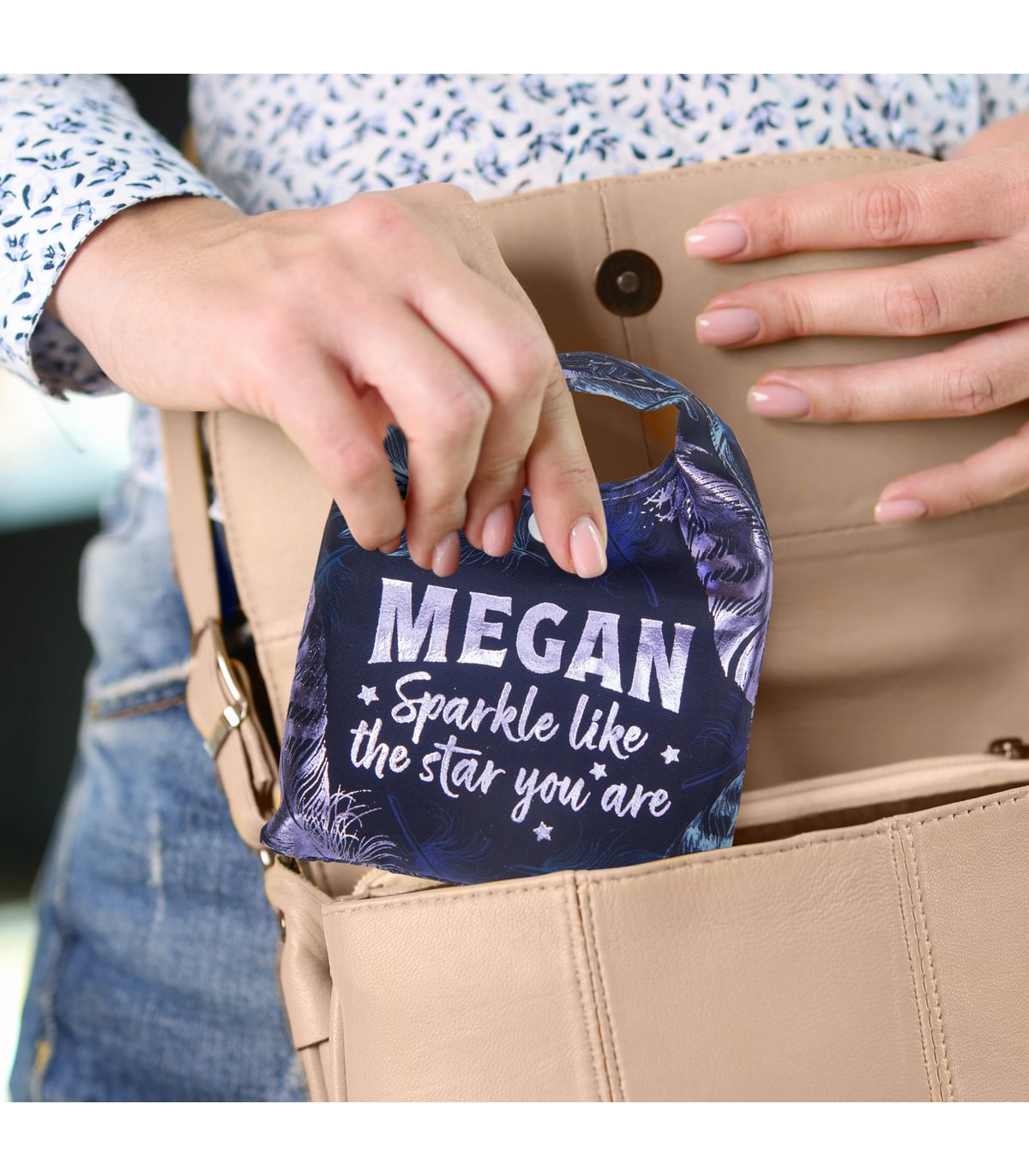 The perfect blend of sustainability, style, and practicality. The personalised Sparkle Shopper Bag is reusable and reduces the need for single-use plastic bags, helping to minimise environmental waste. The sparkly pouch is pre-personalised with popular names and fun sentiment, the shopper adds a personal touch that reflects your personality. Versatile and durable and a lovely gift idea, the tote is ideal for shopping and folds away in its own sparkly pouch to easily pop in your handbag until you need it again! PLEASE NOTE: These items are pre-personalised. The item you receive is the name or title that you have selected. Items are not personalised to order and we do not offer bespoke customisation.