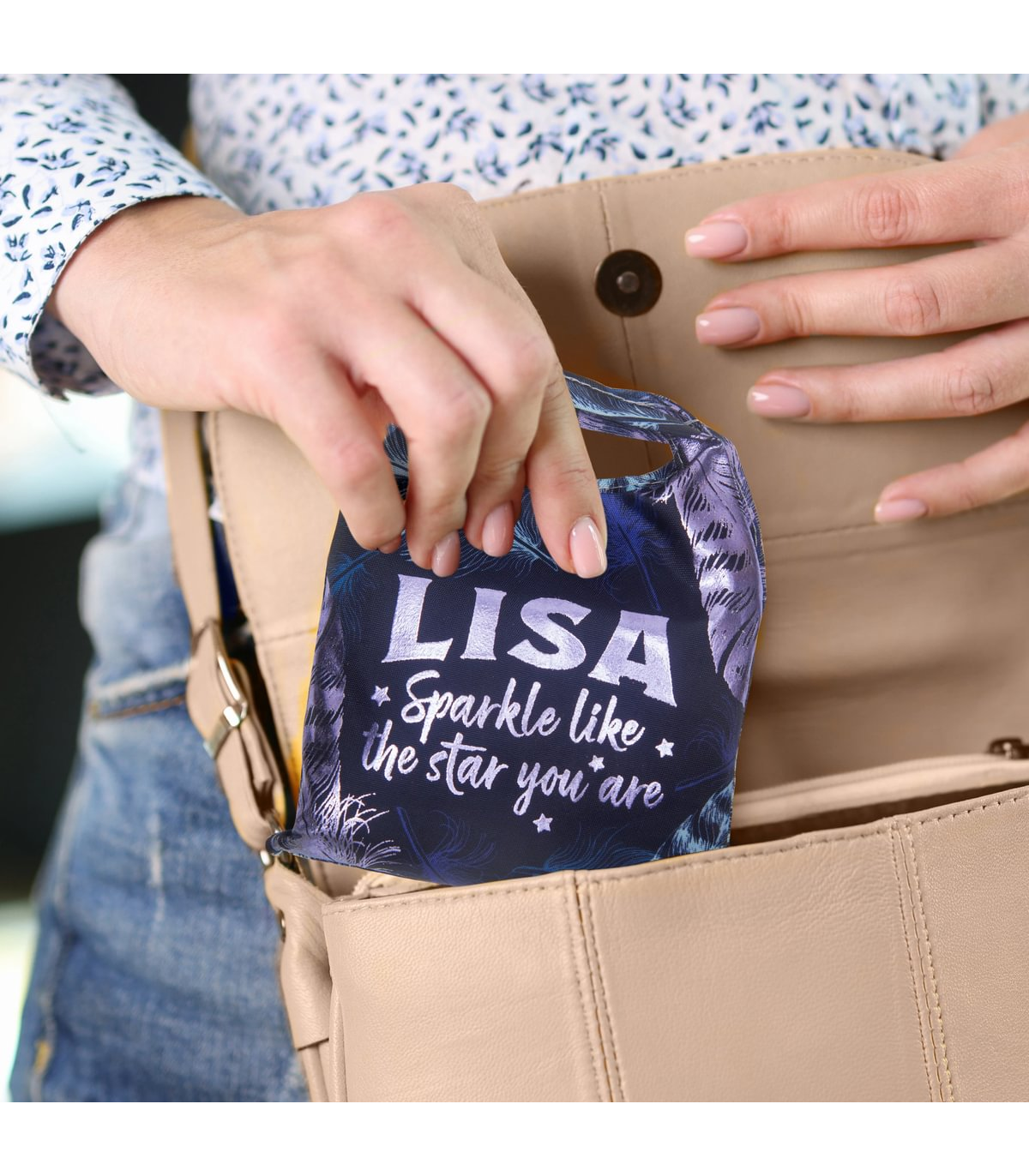 The perfect blend of sustainability, style, and practicality. The personalised Sparkle Shopper Bag is reusable and reduces the need for single-use plastic bags, helping to minimise environmental waste.