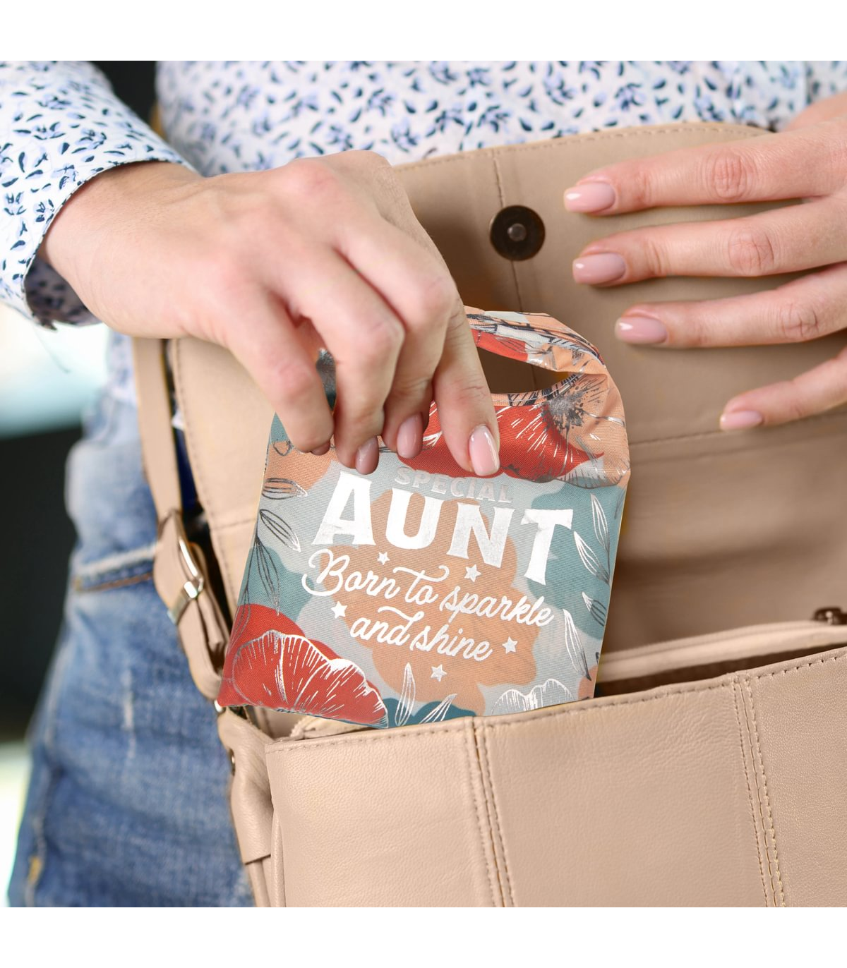 Pre-personalised Pack-Away Sparkle Shopper Bag - Aunt
