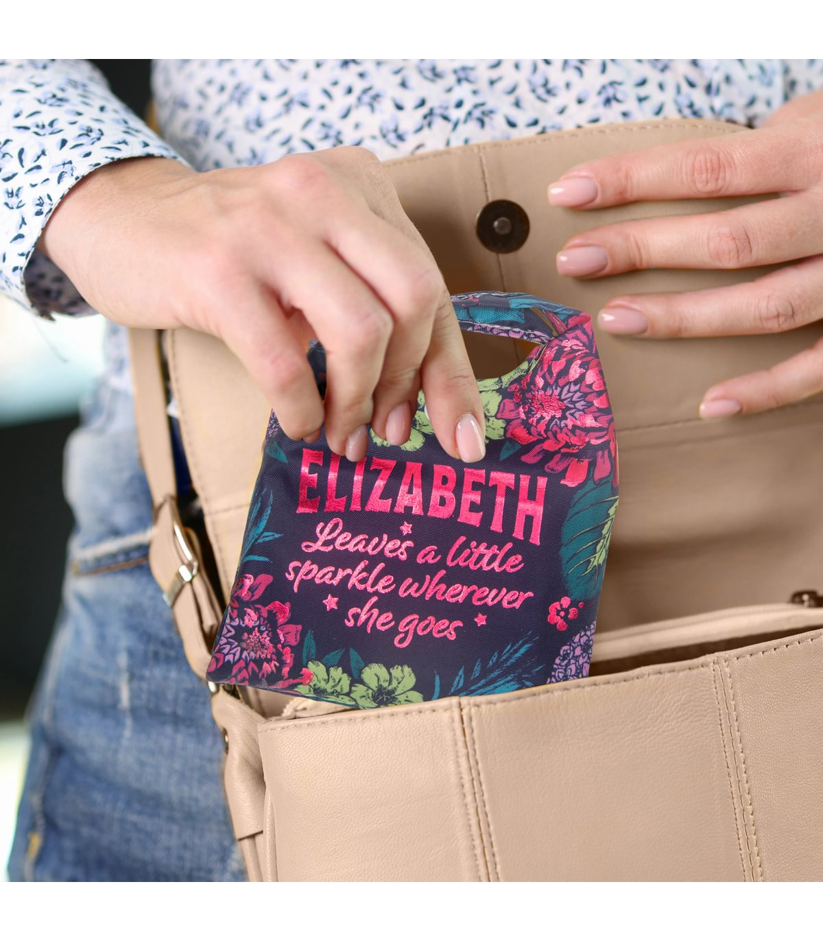 The perfect blend of sustainability, style, and practicality. The personalised Sparkle Shopper Bag is reusable and reduces the need for single-use plastic bags, helping to minimise environmental waste.