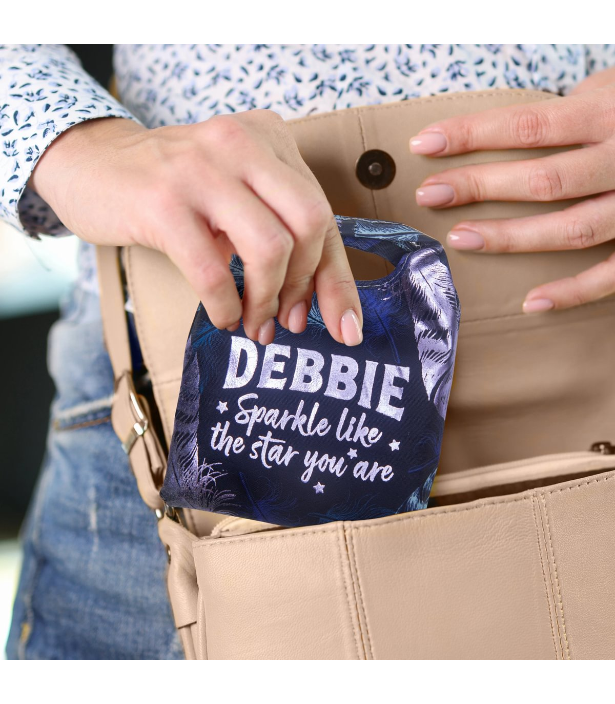 Pre-personalised Pack-Away Sparkle Shopper Bag - Debbie